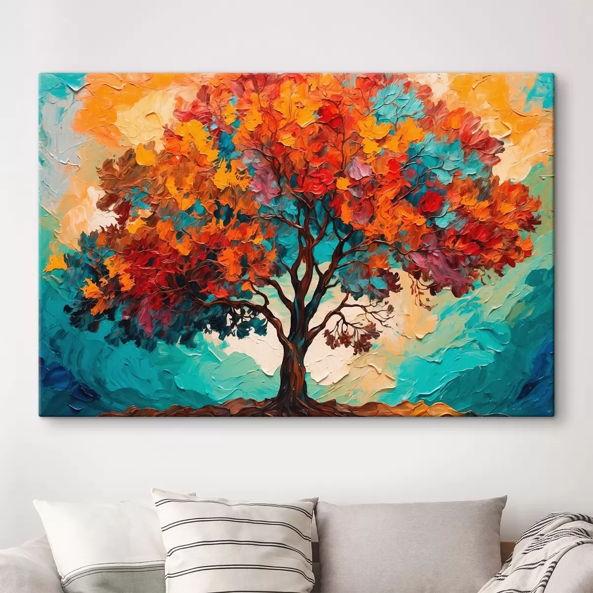Maalid Puu oranži-sinisel taustal õlimaalide stiilis Nr s42267