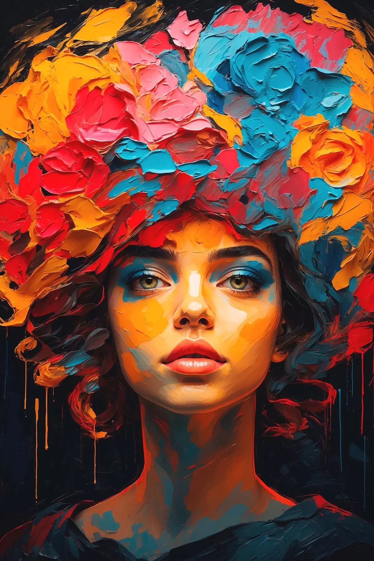 Maalid Tüdruk lilledega peas õlimaali stiilis Nr s42271