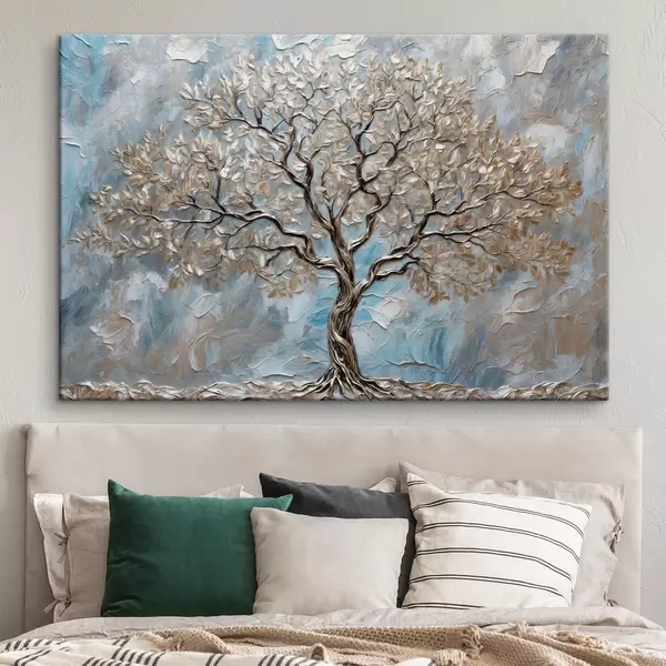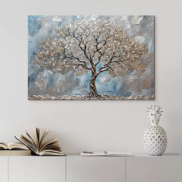 Maalid Hõbedane puu sinihallil taustal Nr s42273