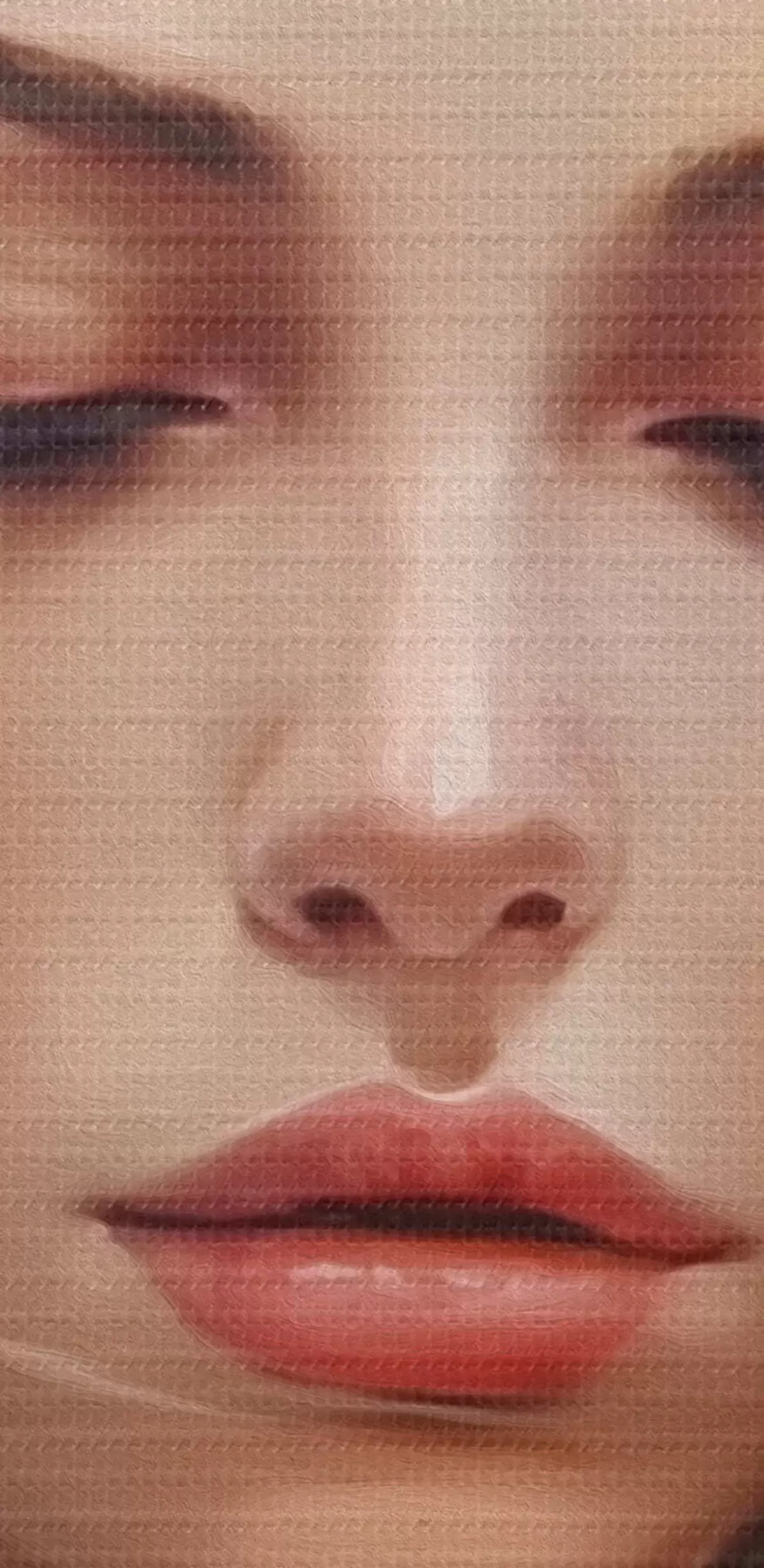 Selle lõuendi peenike niidipunus meenutab professionaalse kunstniku lõuendi pinda.