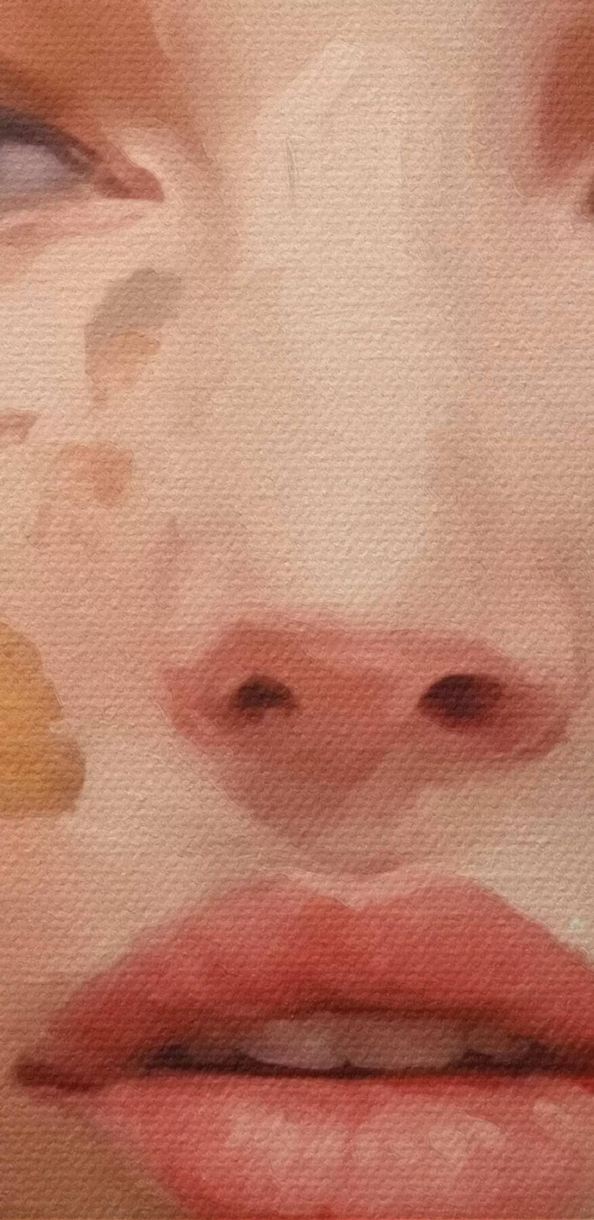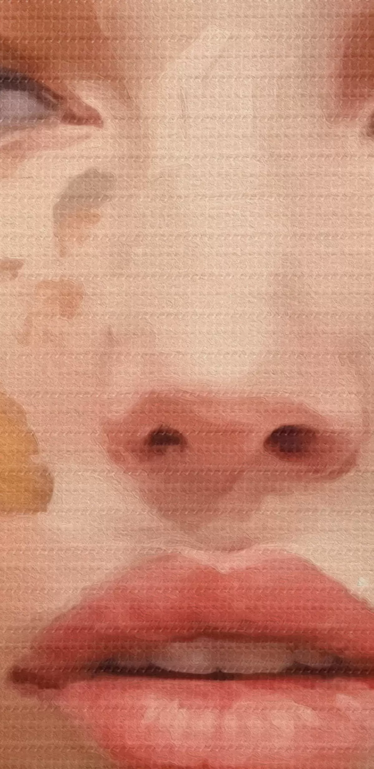 Selle lõuendi peenike niidipunus meenutab professionaalse kunstniku lõuendi pinda.