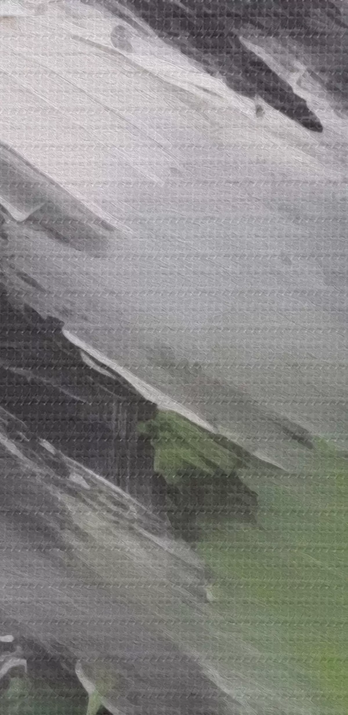 Selle lõuendi peenike niidipunus meenutab professionaalse kunstniku lõuendi pinda.