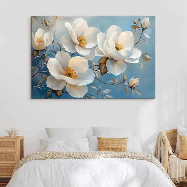 Maalid Suured valged lilled sinisel taustal Nr s42321