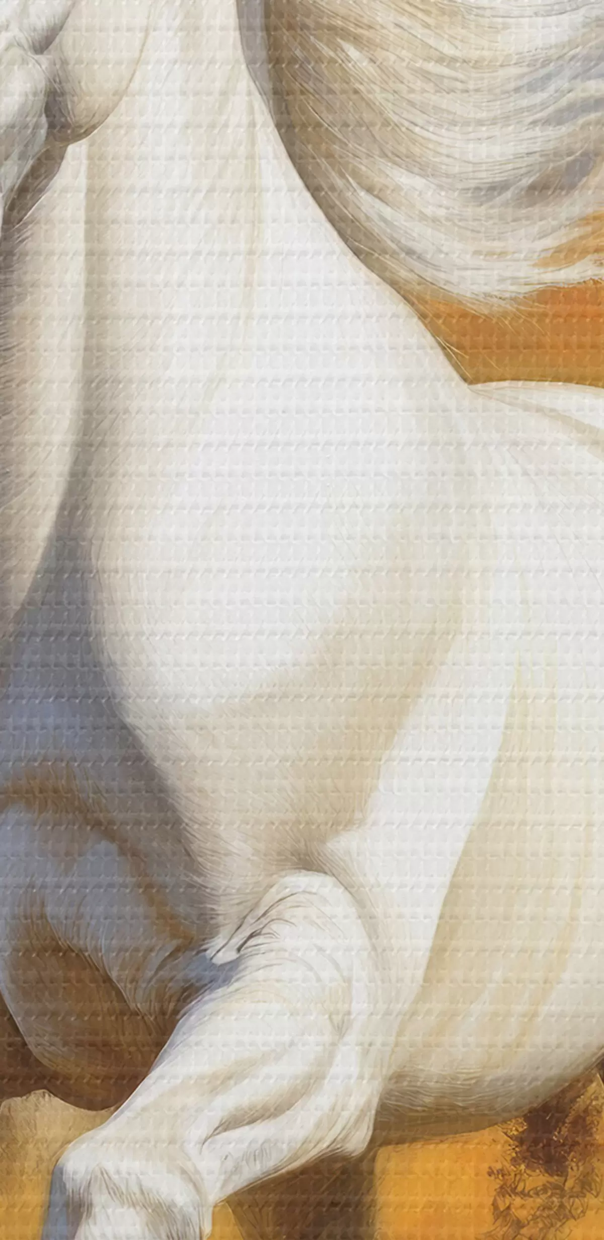 Selle lõuendi peenike niidipunus meenutab professionaalse kunstniku lõuendi pinda.