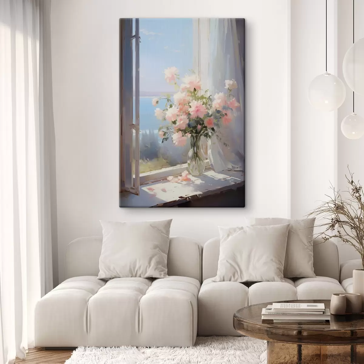 Maalid Kimp õrnade lilledega klaasvases, mis imiteerib maali Nr s42352