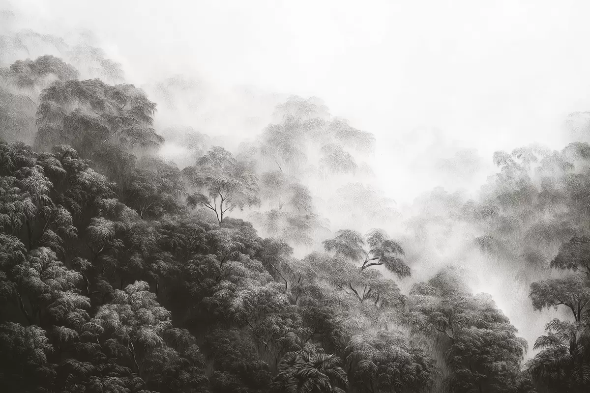 Pilt Troopiline mets udus, palmipuud, hallid värvid s42371v1