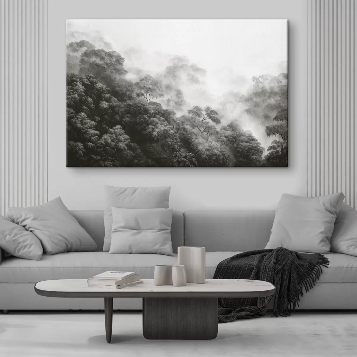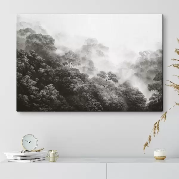 Maalid Troopiline mets udus, palmipuud, hallid värvid Nr s42371v1