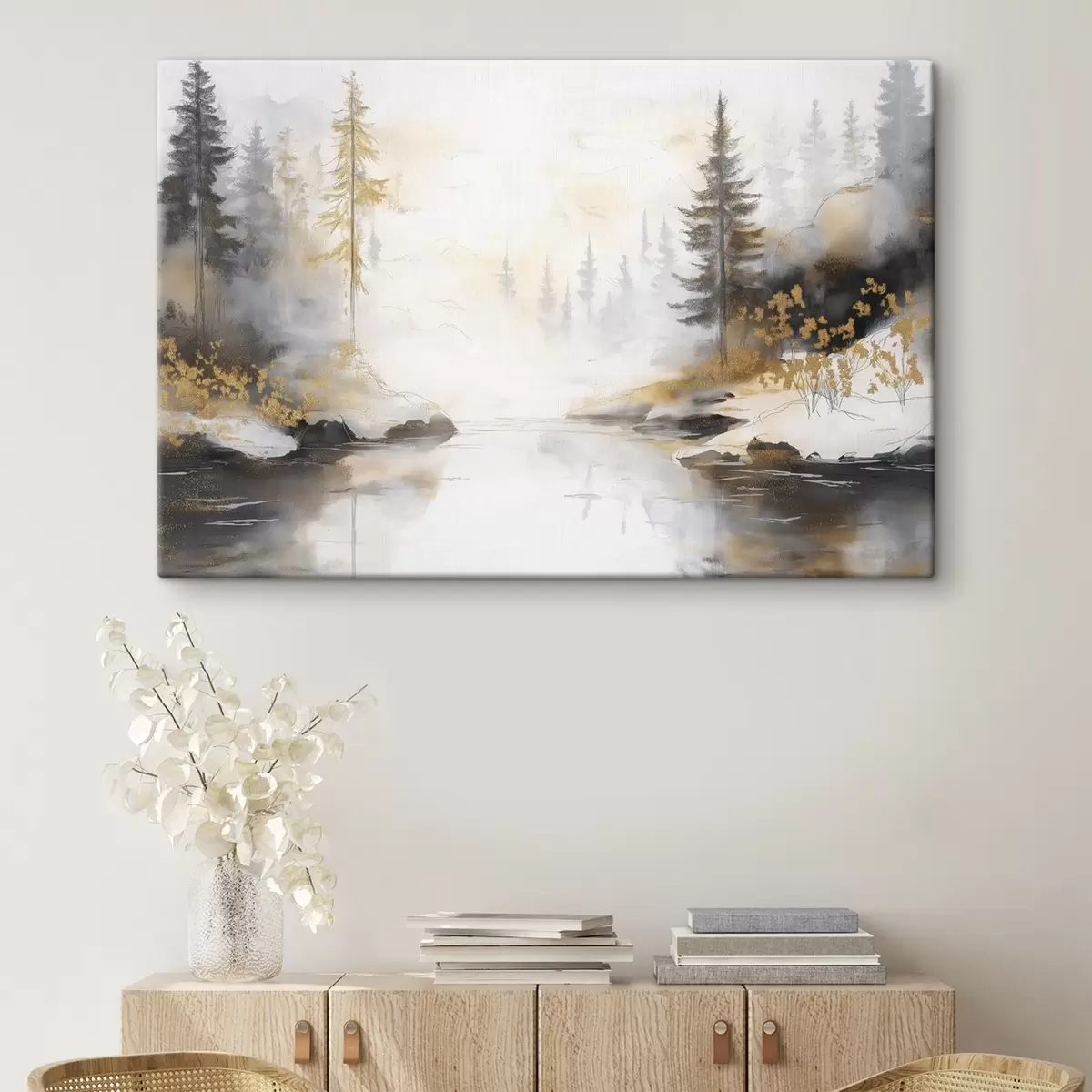 Maalid Loodusmaastik jõe, metsa ja mändidega, pehmed pastellvärvid Nr s42375