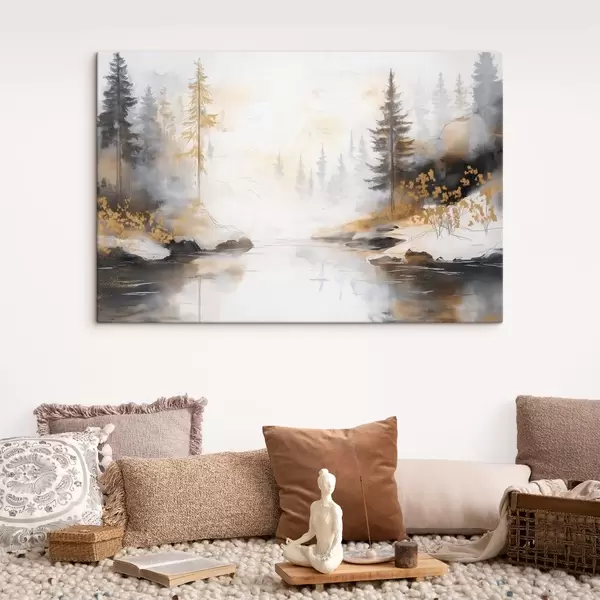 Maalid Loodusmaastik jõe, metsa ja mändidega, pehmed pastellvärvid Nr s42375