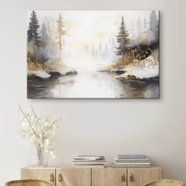 Maalid Loodusmaastik jõe, metsa ja mändidega, pehmed pastellvärvid Nr s42375