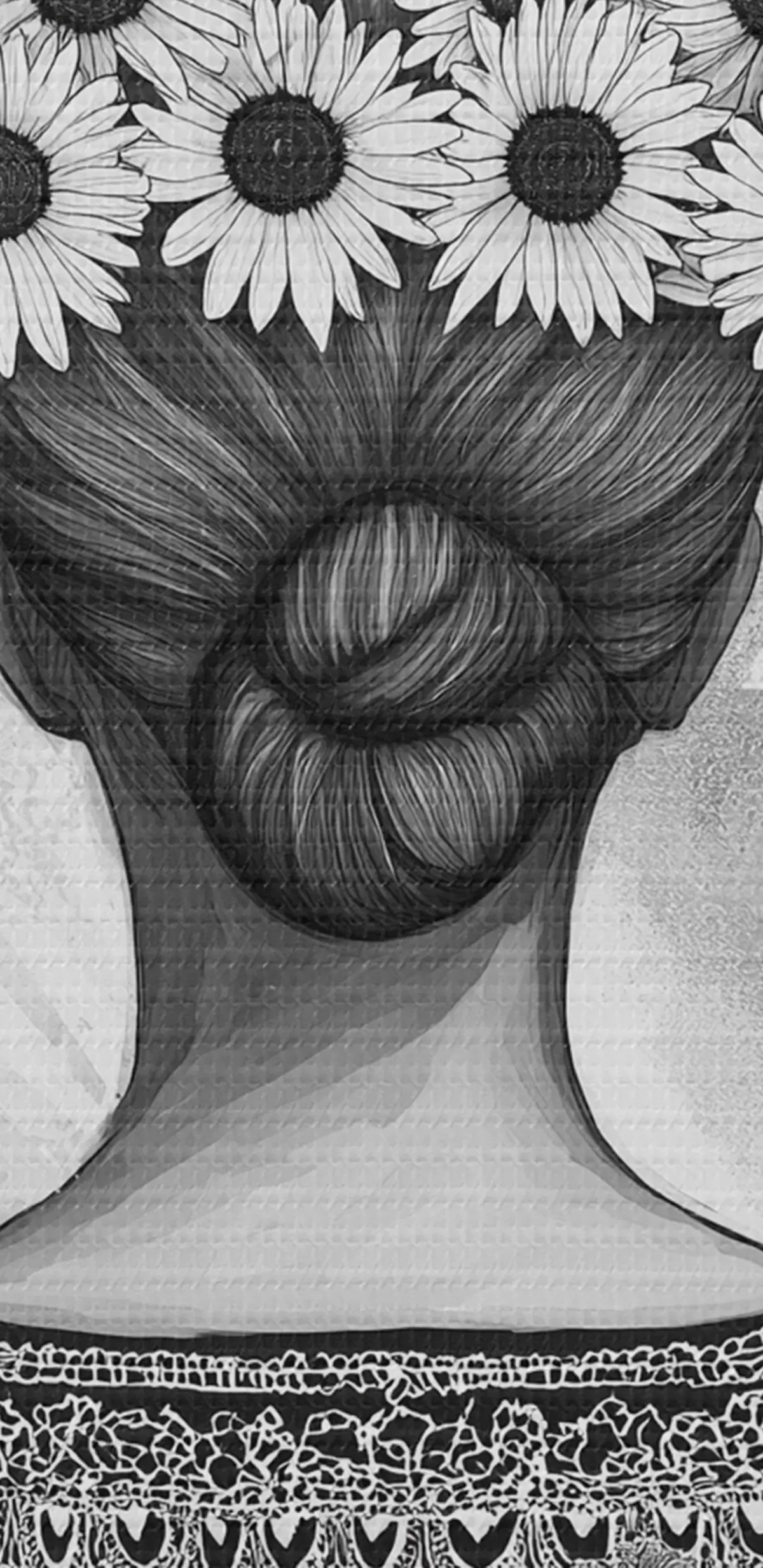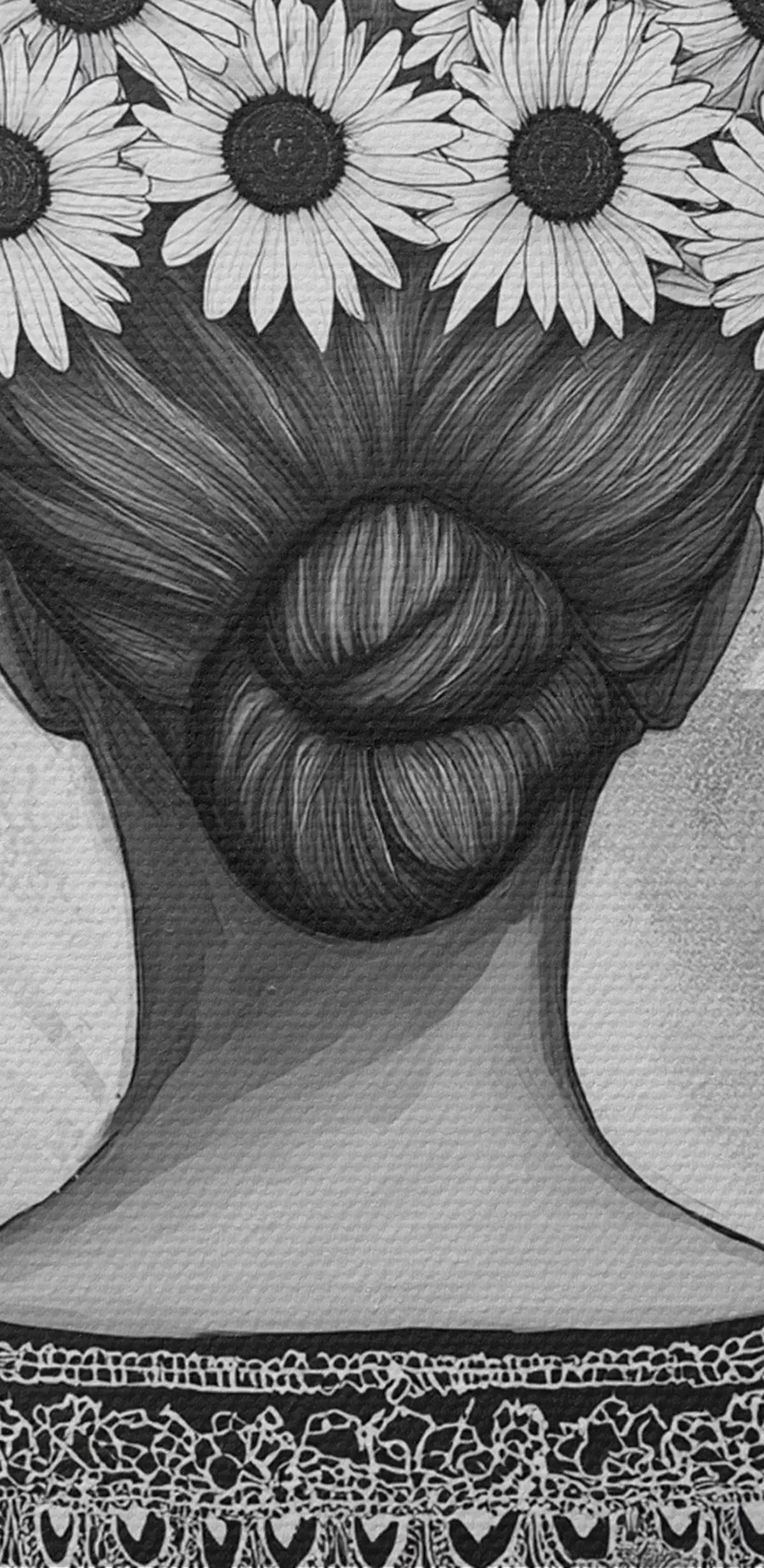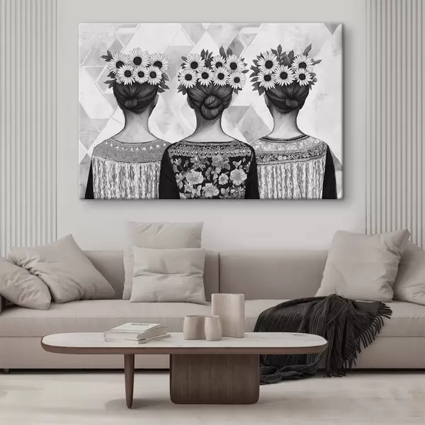 Maalid Kolm naist etnilises riietuses, pliiatsiga joonistus, päevalilled Nr s42377
