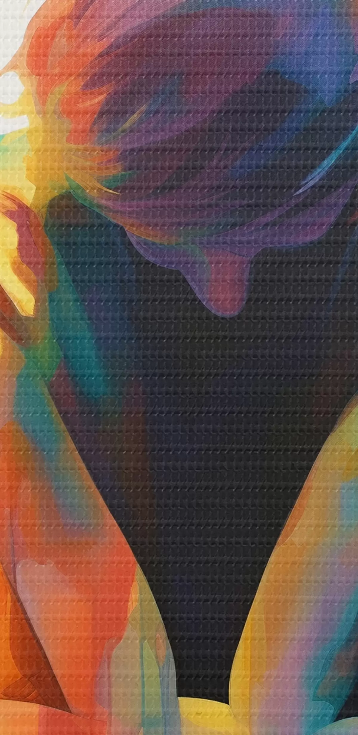 Selle lõuendi peenike niidipunus meenutab professionaalse kunstniku lõuendi pinda.