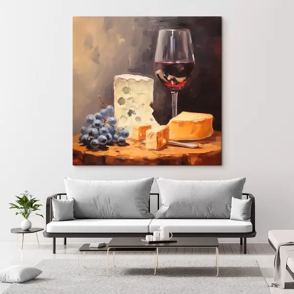 Maalid Klaas punast veini ja juustude imitatsioonimaali Nr s42415