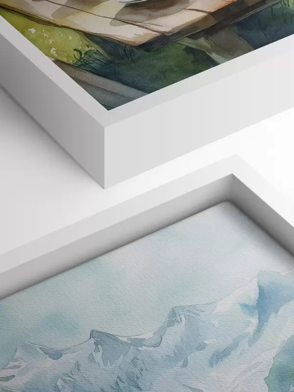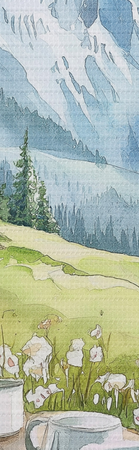 Maalid Hommikusöök Alpides, mäed, mets, loodus, suvi, akvarellstiil Nr s42426