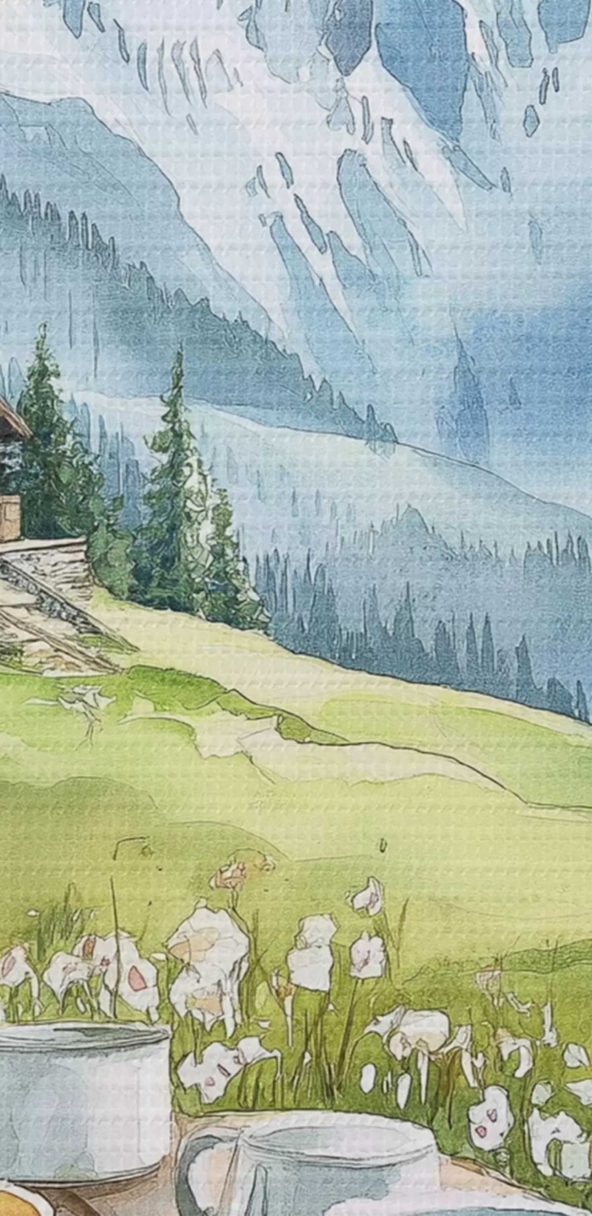 Maalid Hommikusöök Alpides, mäed, mets, loodus, suvi, akvarellstiil Nr s42426