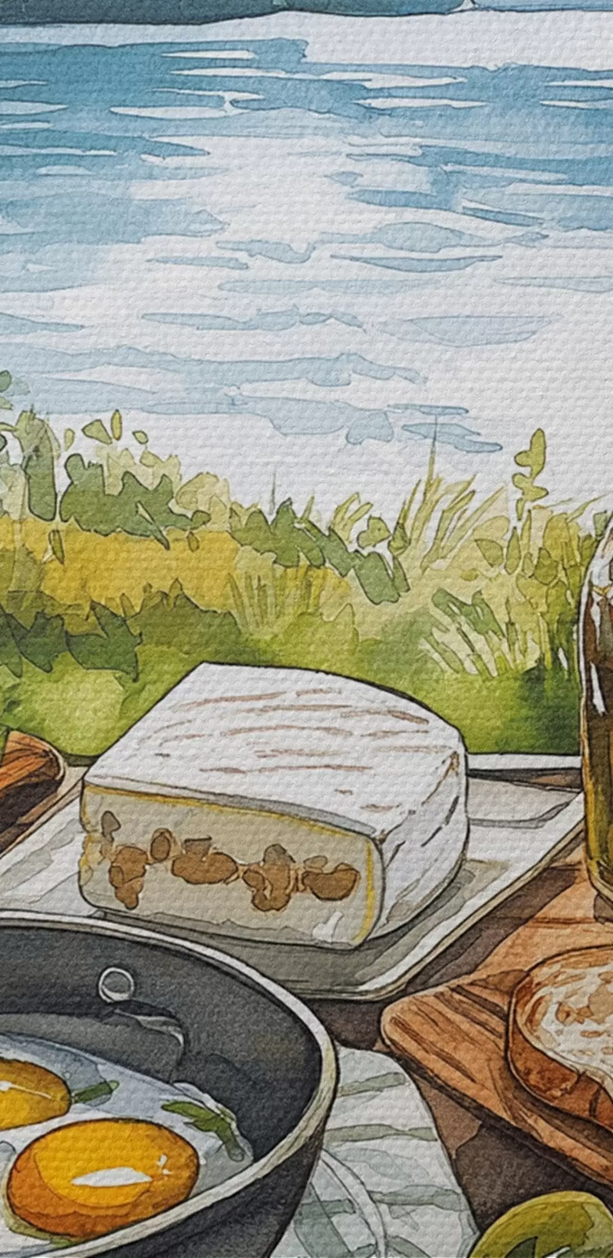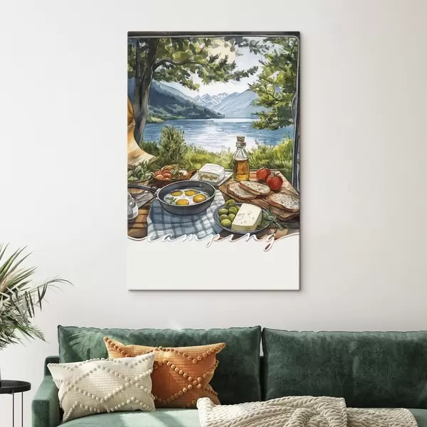 Maalid Telkimise esteetika, akvarellistiil, suvine järv, loodus, toit Nr s42428