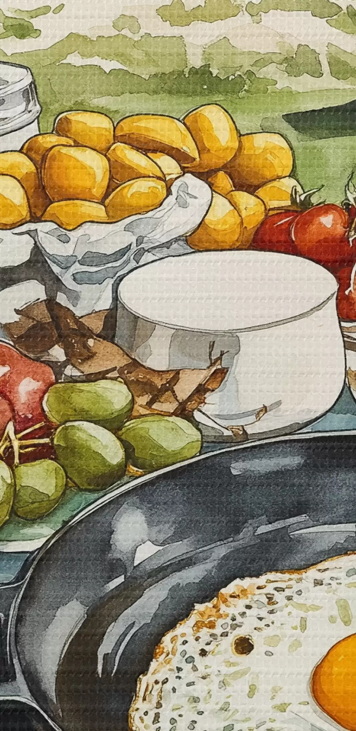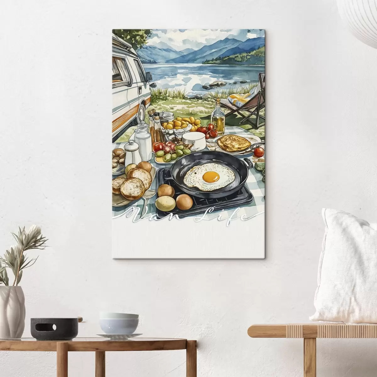 Maalid Kaunis akvarellstiilis hommikusöök, van elu, telkimine, mäed Nr s42429