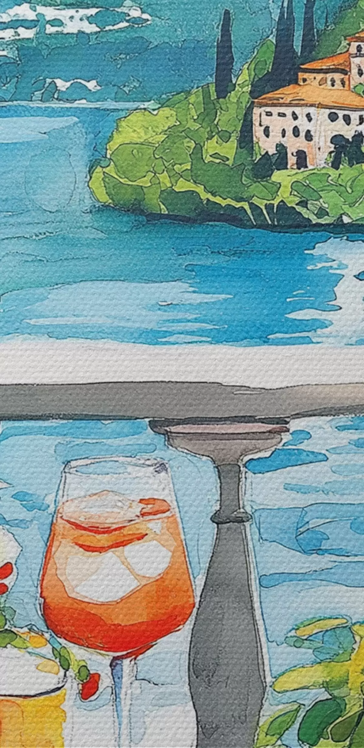 Maalid Itaalia esteetika, akvarellistiil, pitsa ja kokteilid, mäed Nr s42434