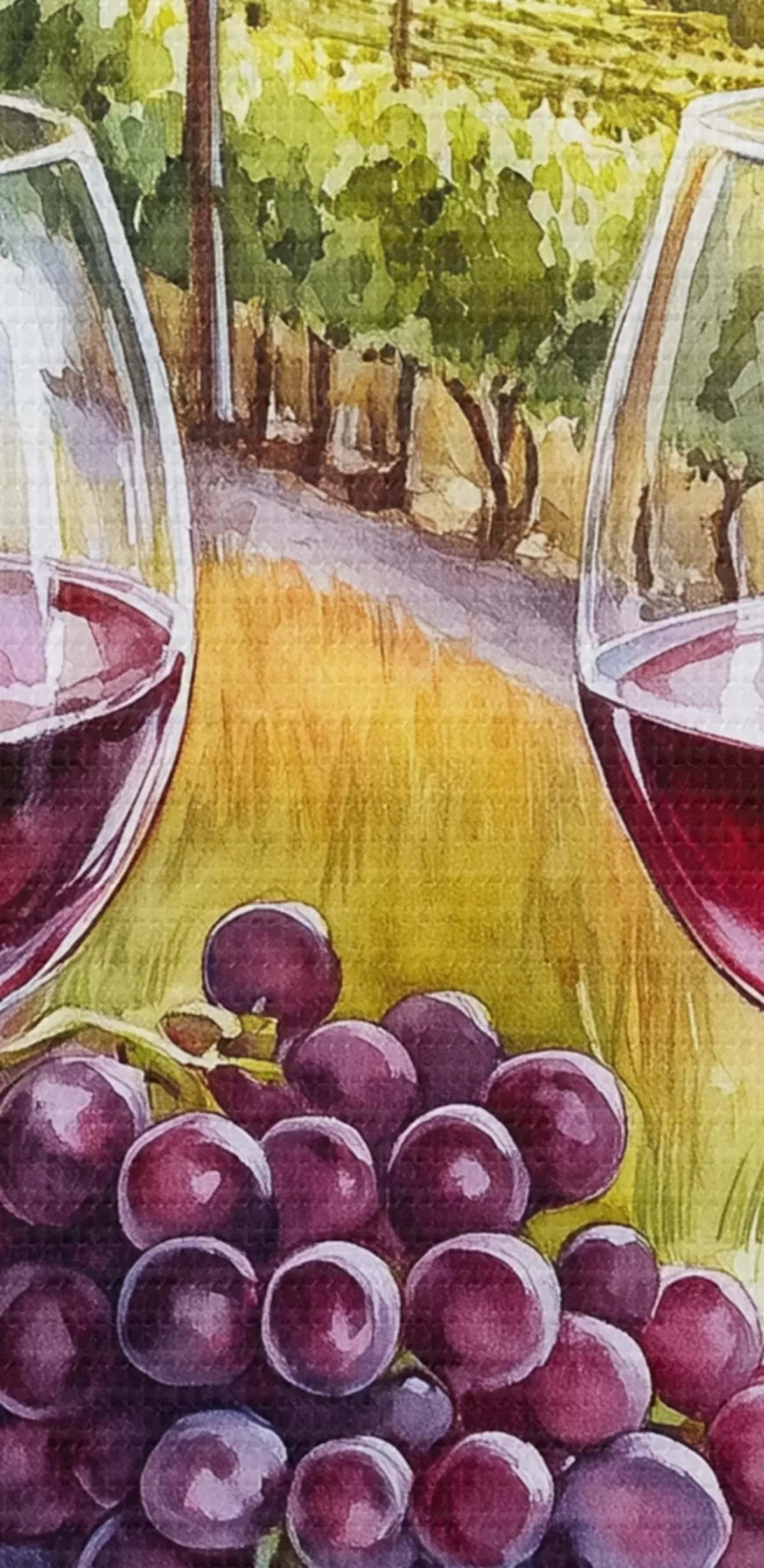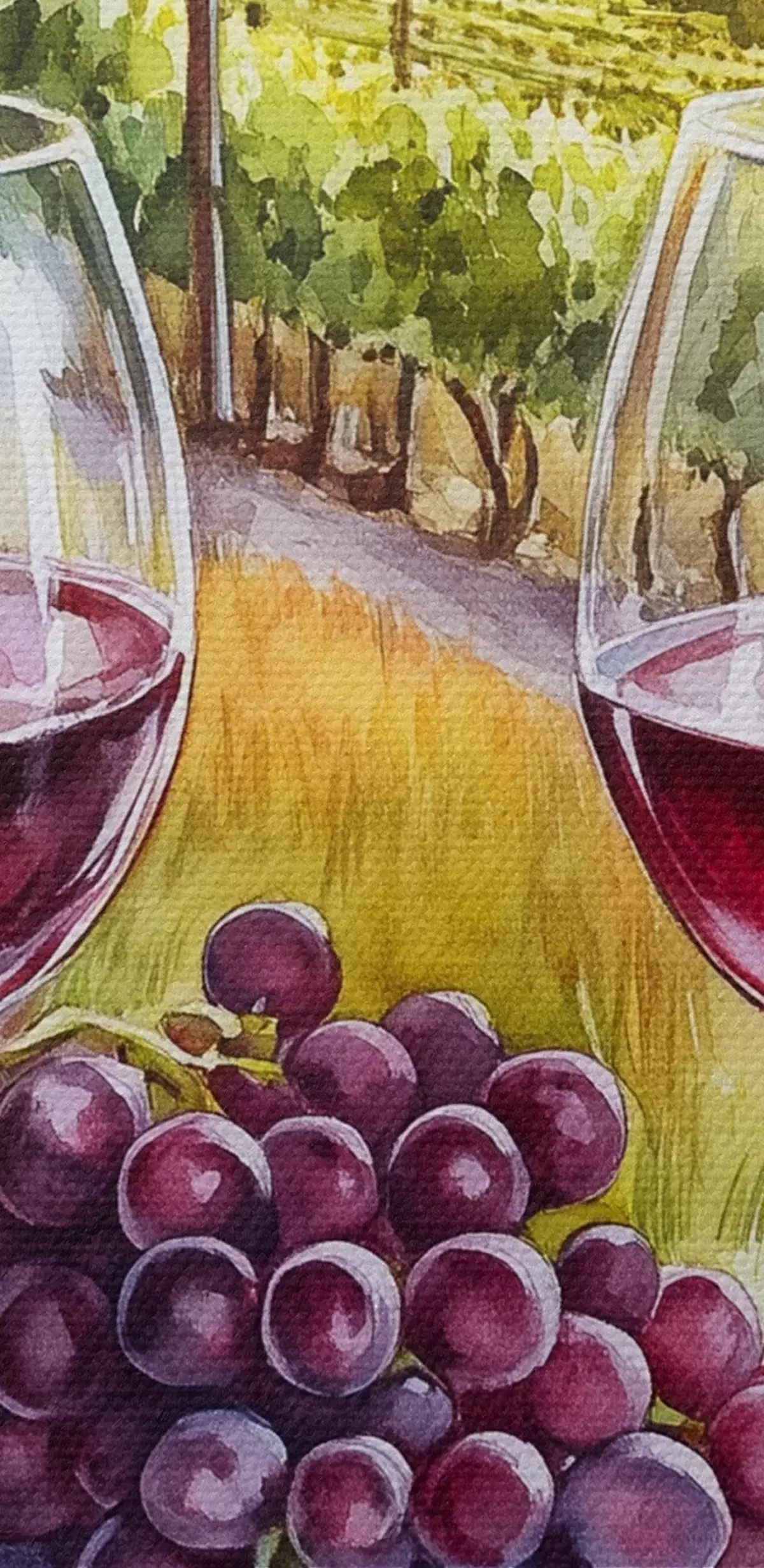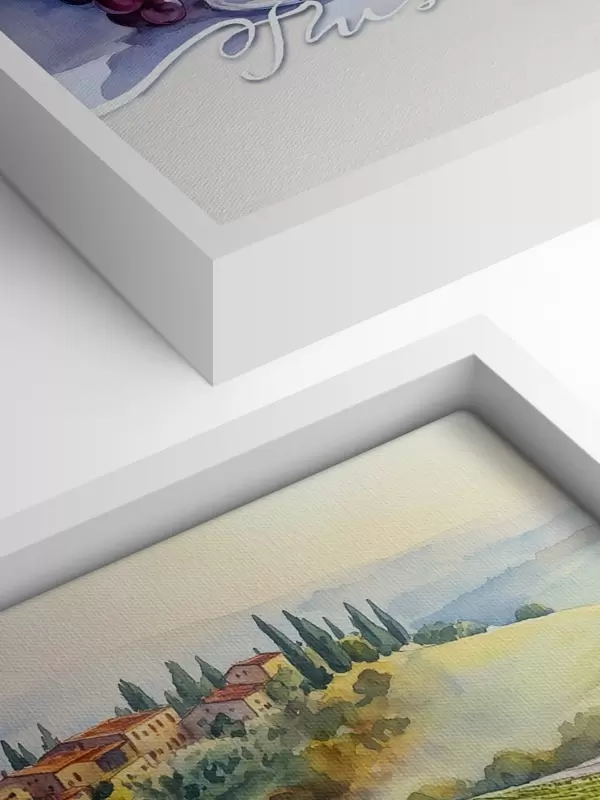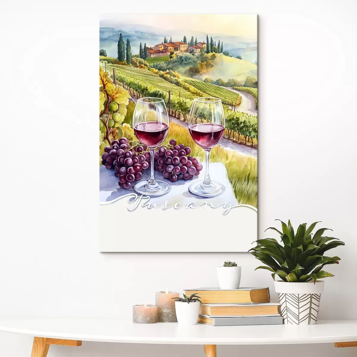 Maalid Toscana maastikud, akvarellistiil, veiniklaasid, viinamarjad, päikeseloojang Nr s42439