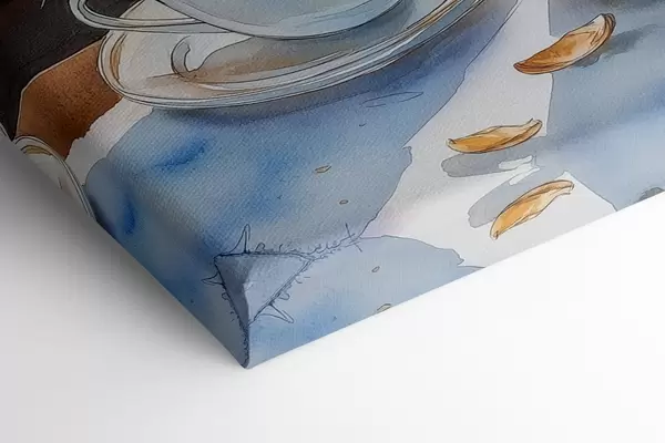 Maalid Päikeseloojang järvel, purjekad, kohvitassid, akvarellistiilis Nr s42442