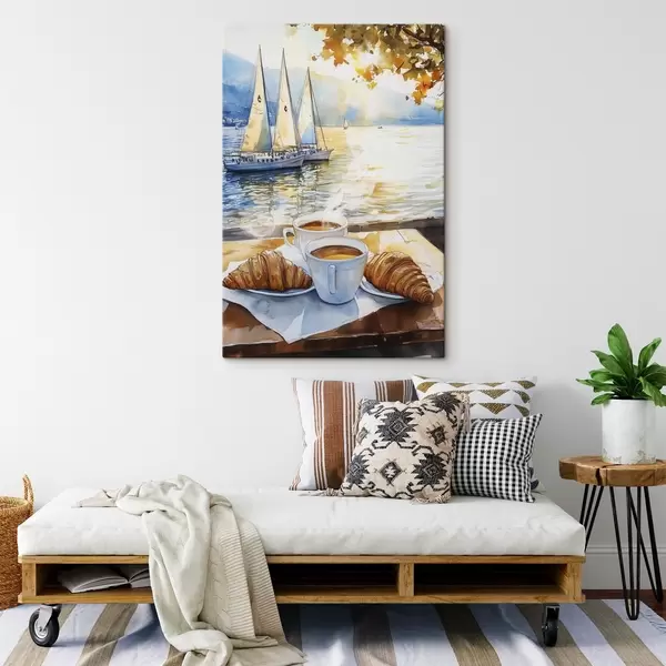 Maalid Tass kohvi, päikeseloojangu värvid, järv, purjekad, loodus, reisimine Nr s42443