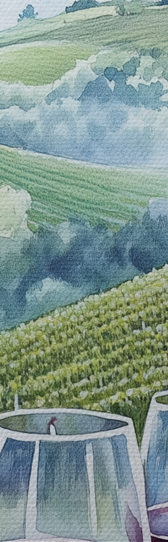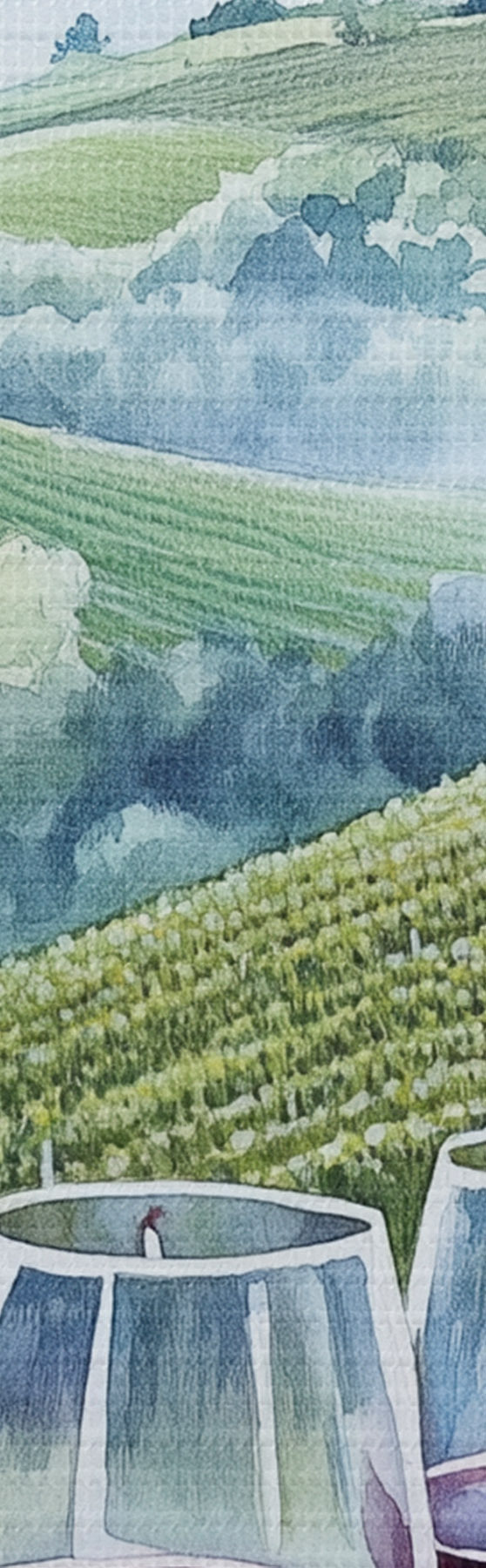 Maalid Toscana maastik, viinamarjaistandused, veiniklaasid, akvarellstiil Nr s42445