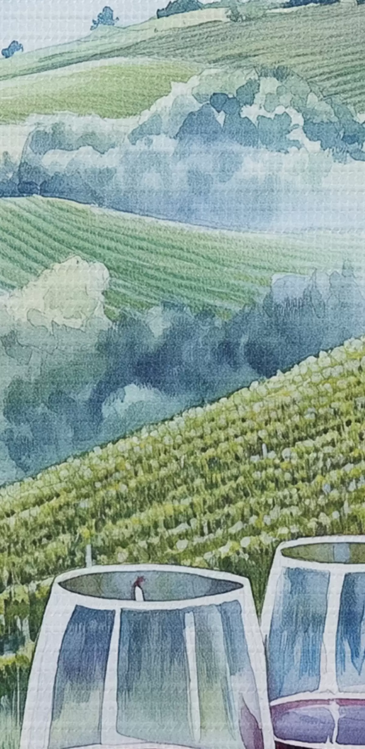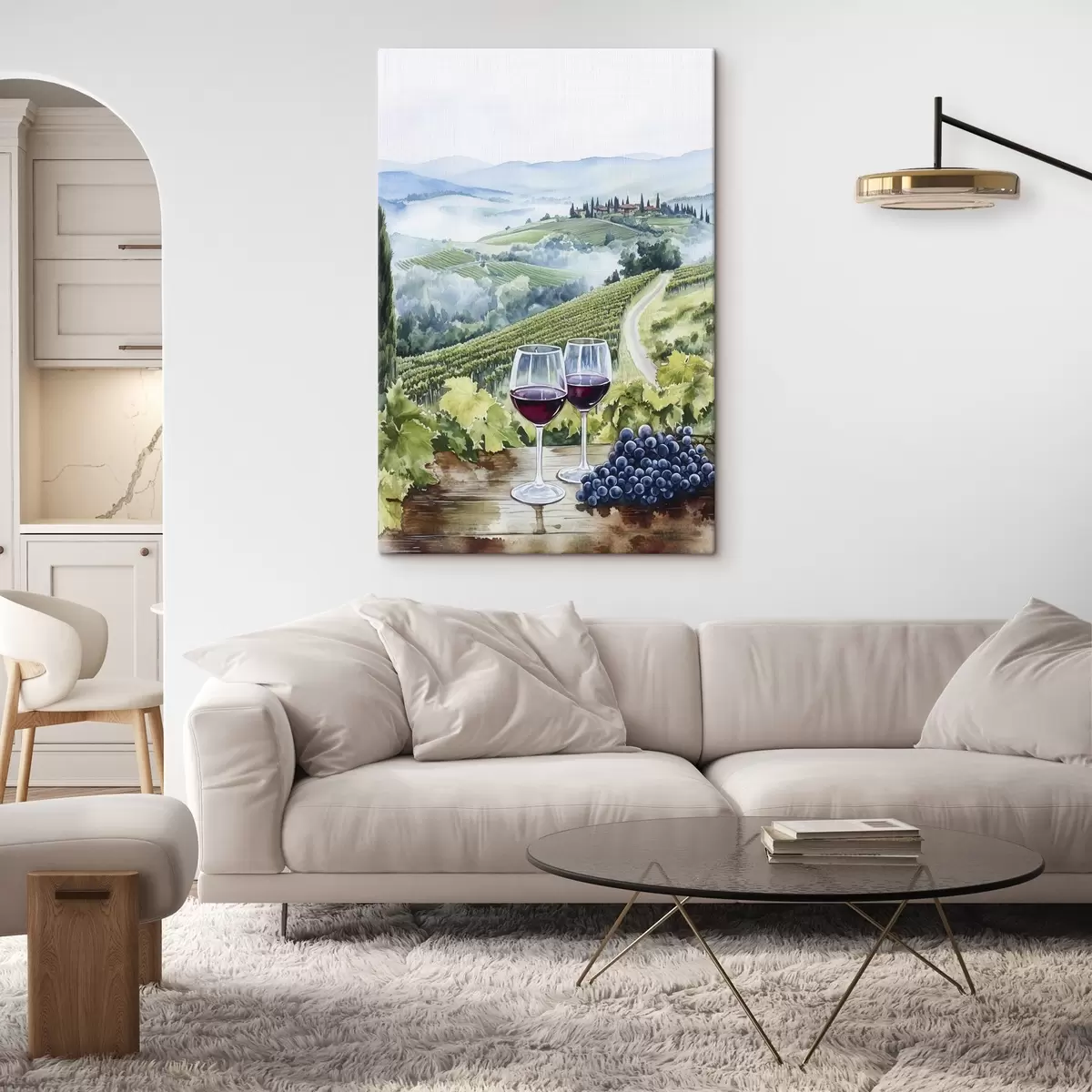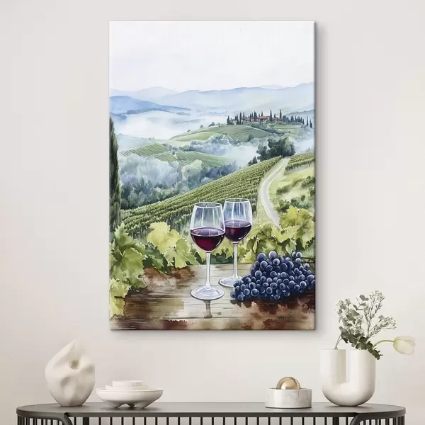 Maalid Toscana maastik, viinamarjaistandused, veiniklaasid, akvarellstiil Nr s42445