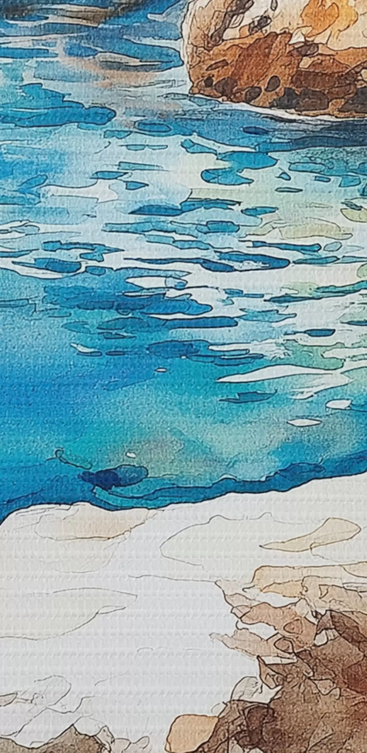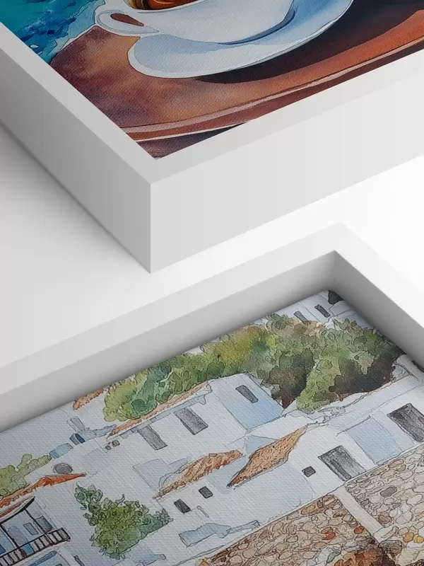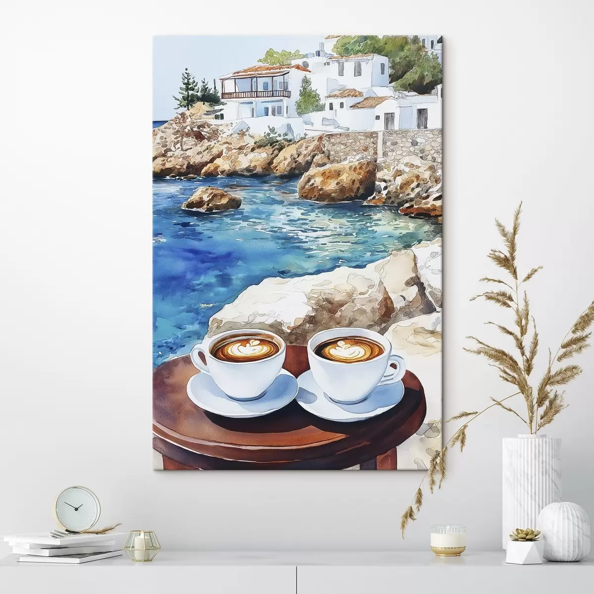 Maalid Akvarell mere ääres koos kohvitassidega, suvi Nr s42449