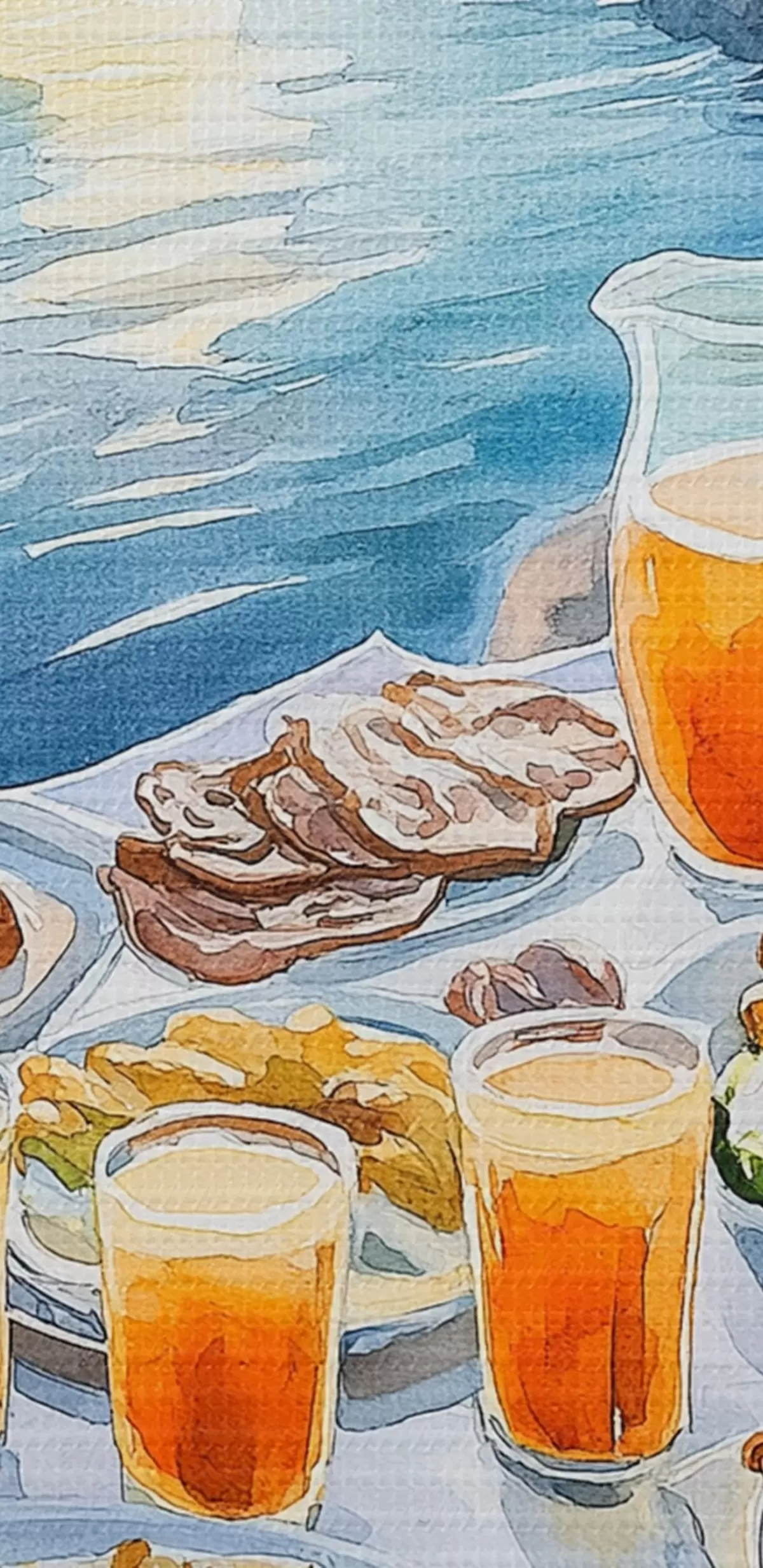 Maalid Romantiline kutsumus Kreekas, akvarellstiilis, hommikusöök, päikesetõus Nr s42453