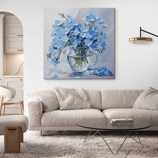 Maalid Sinised lilled läbipaistvas vaasis, mis imiteerib maali Nr s42467