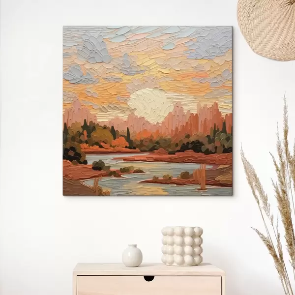 Maali võib riputada kohe pärast selle kättesaamist. Maal on pingutatud 2 cm laiusele puidust kandikule.