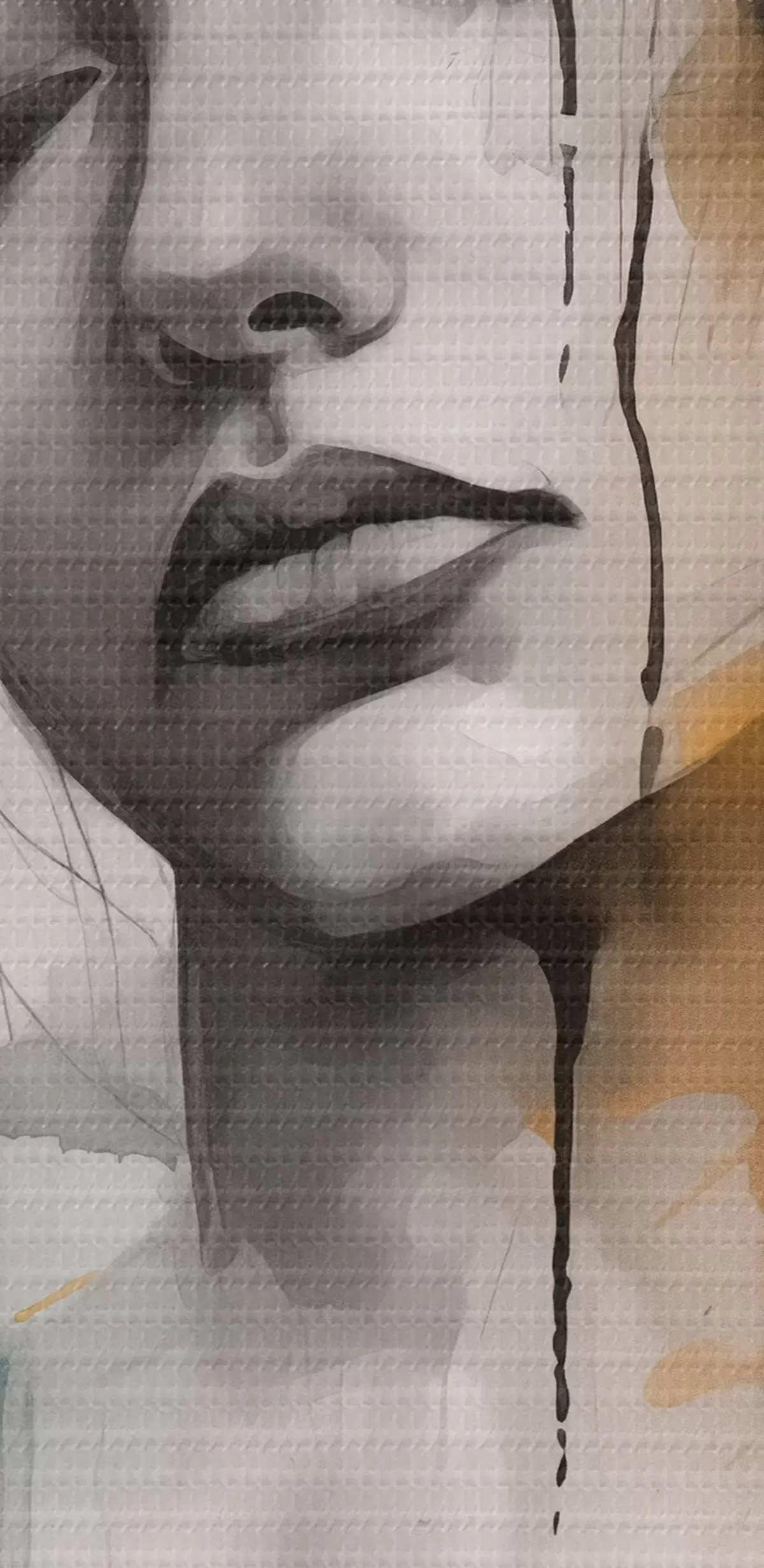 Selle lõuendi peenike niidipunus meenutab professionaalse kunstniku lõuendi pinda.