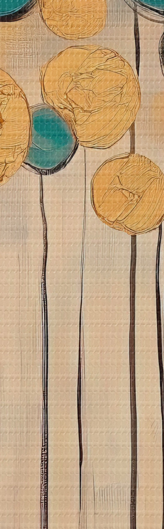 Maalid Dekoratiivne abstraktsioon ümmarguste elementidega sinisel ja beežil taustal Nr s42476