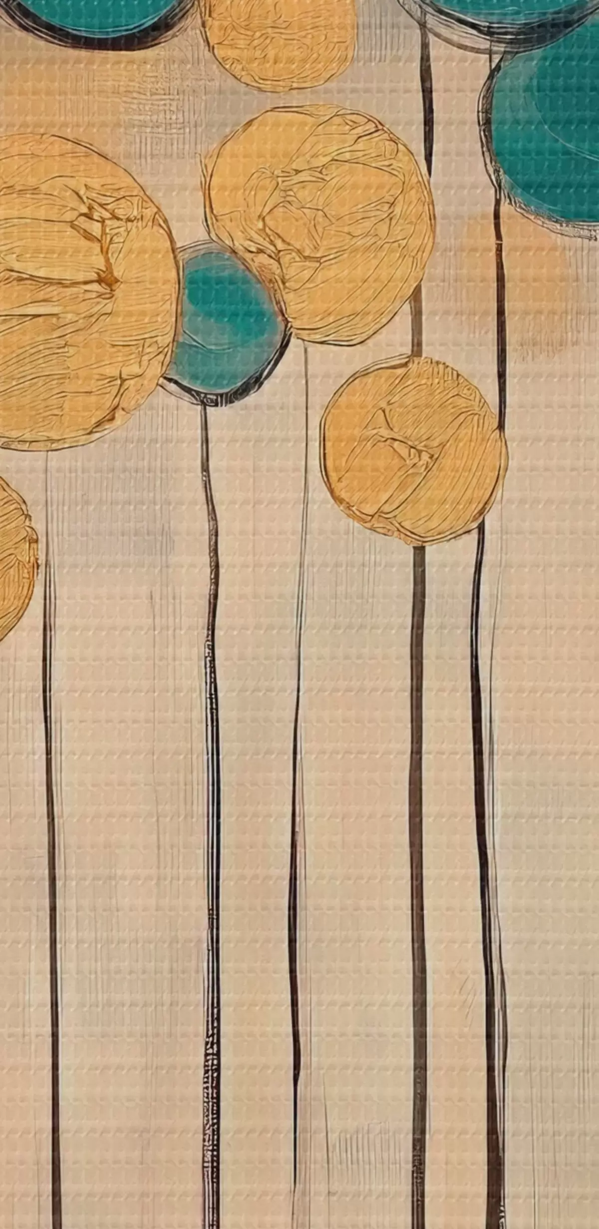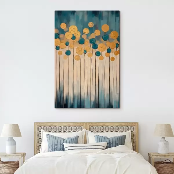 Maalid Dekoratiivne abstraktsioon ümmarguste elementidega sinisel ja beežil taustal Nr s42476