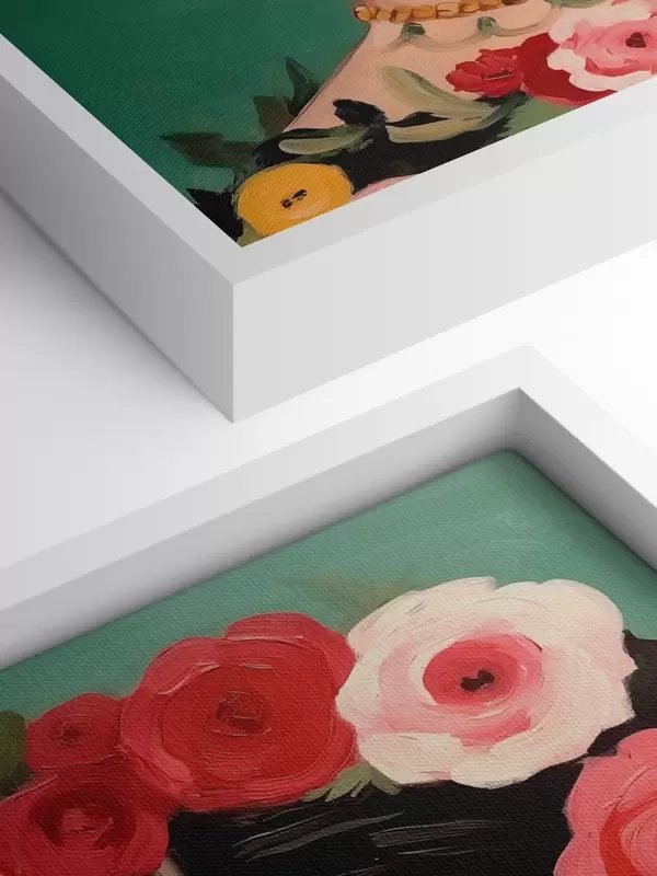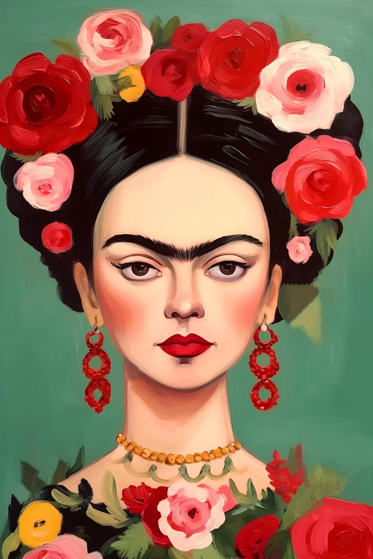Maalid Frida portree lillepärgiga rohelisel taustal Nr s42485