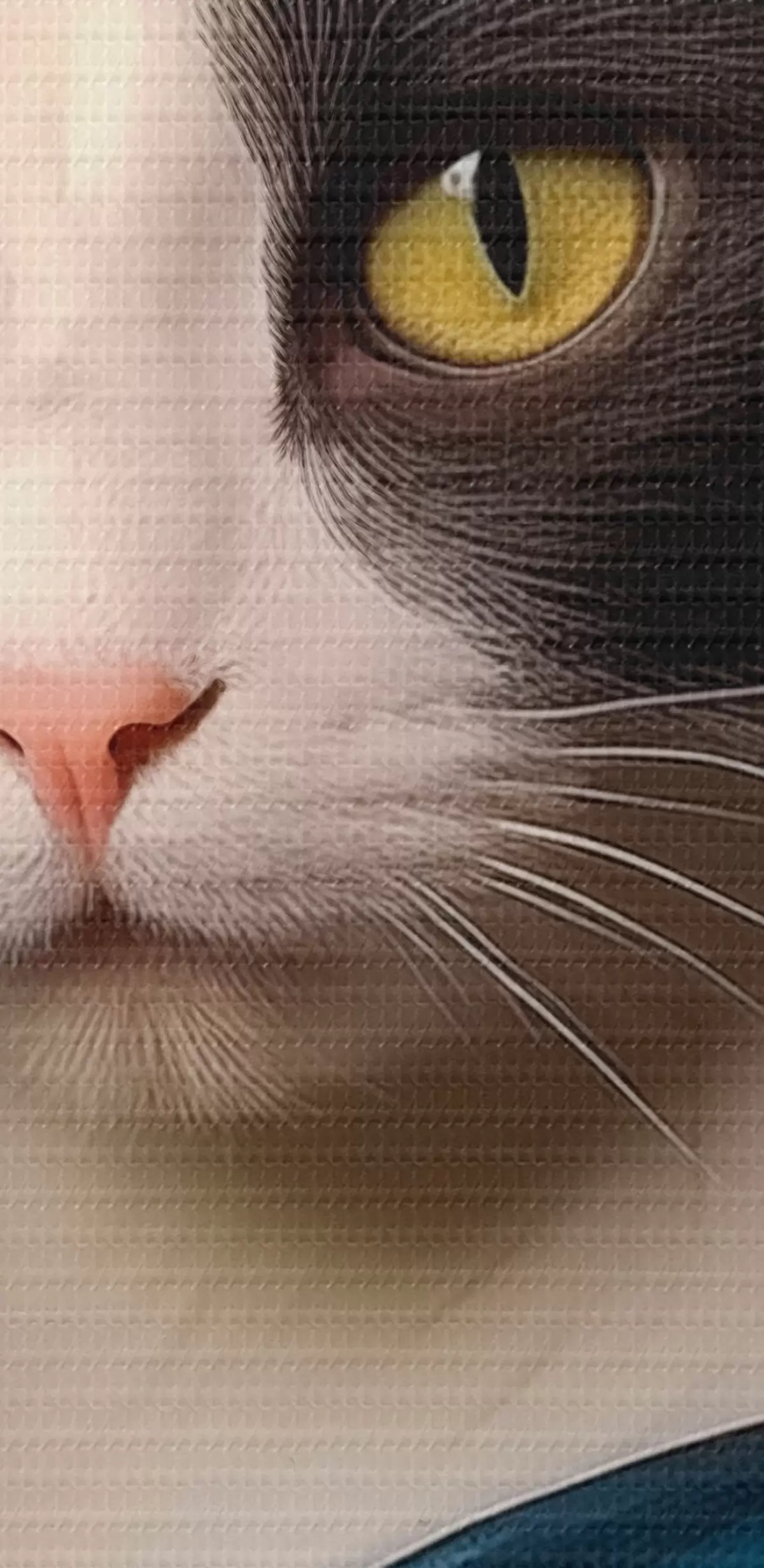 Selle lõuendi peenike niidipunus meenutab professionaalse kunstniku lõuendi pinda.