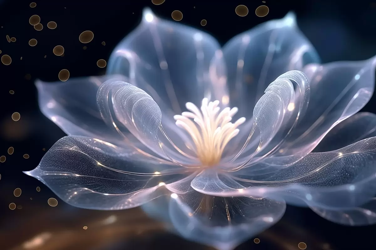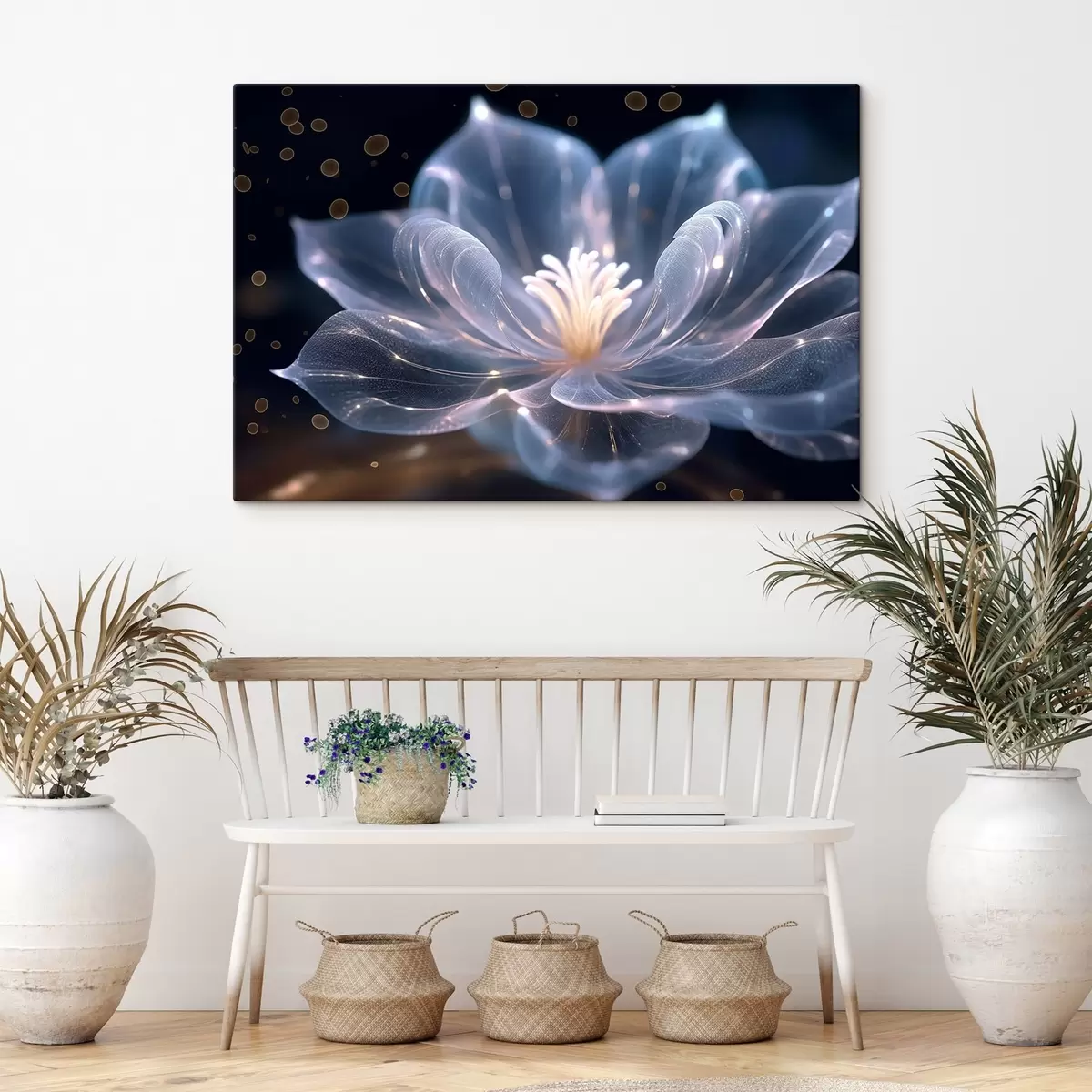 Maalid Hele lill läbipaistvate kroonlehtedega tumedal taustal Nr s42488