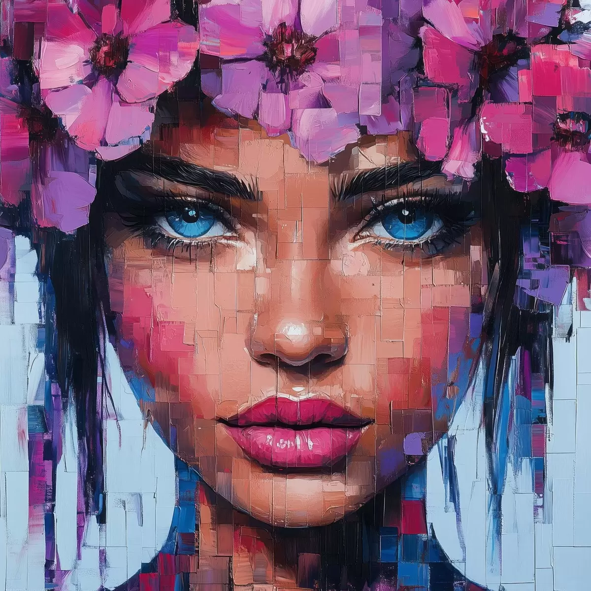 Maalid Mosaiigitükkidest tehtud tüdruku portree Nr s42504