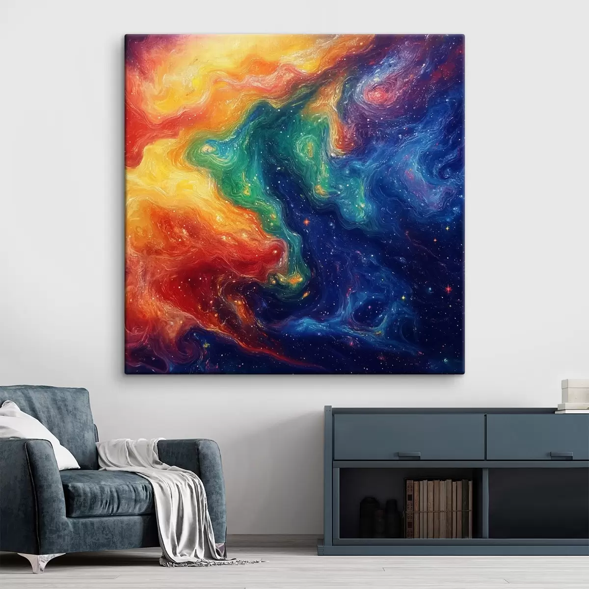 Maali võib riputada kohe pärast selle kättesaamist. Maal on pingutatud 2 cm laiusele puidust kandikule.