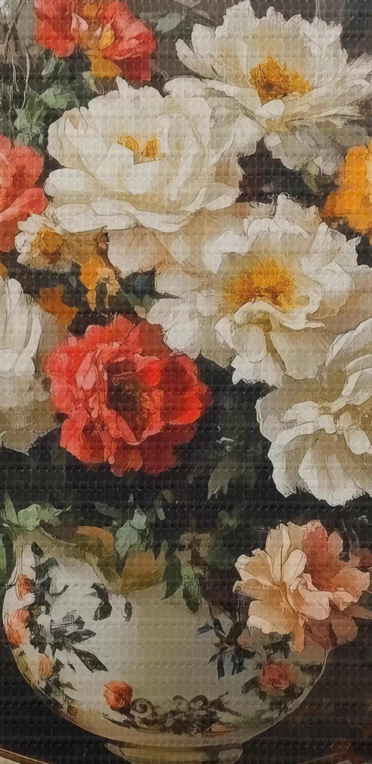 Selle lõuendi peenike niidipunus meenutab professionaalse kunstniku lõuendi pinda.