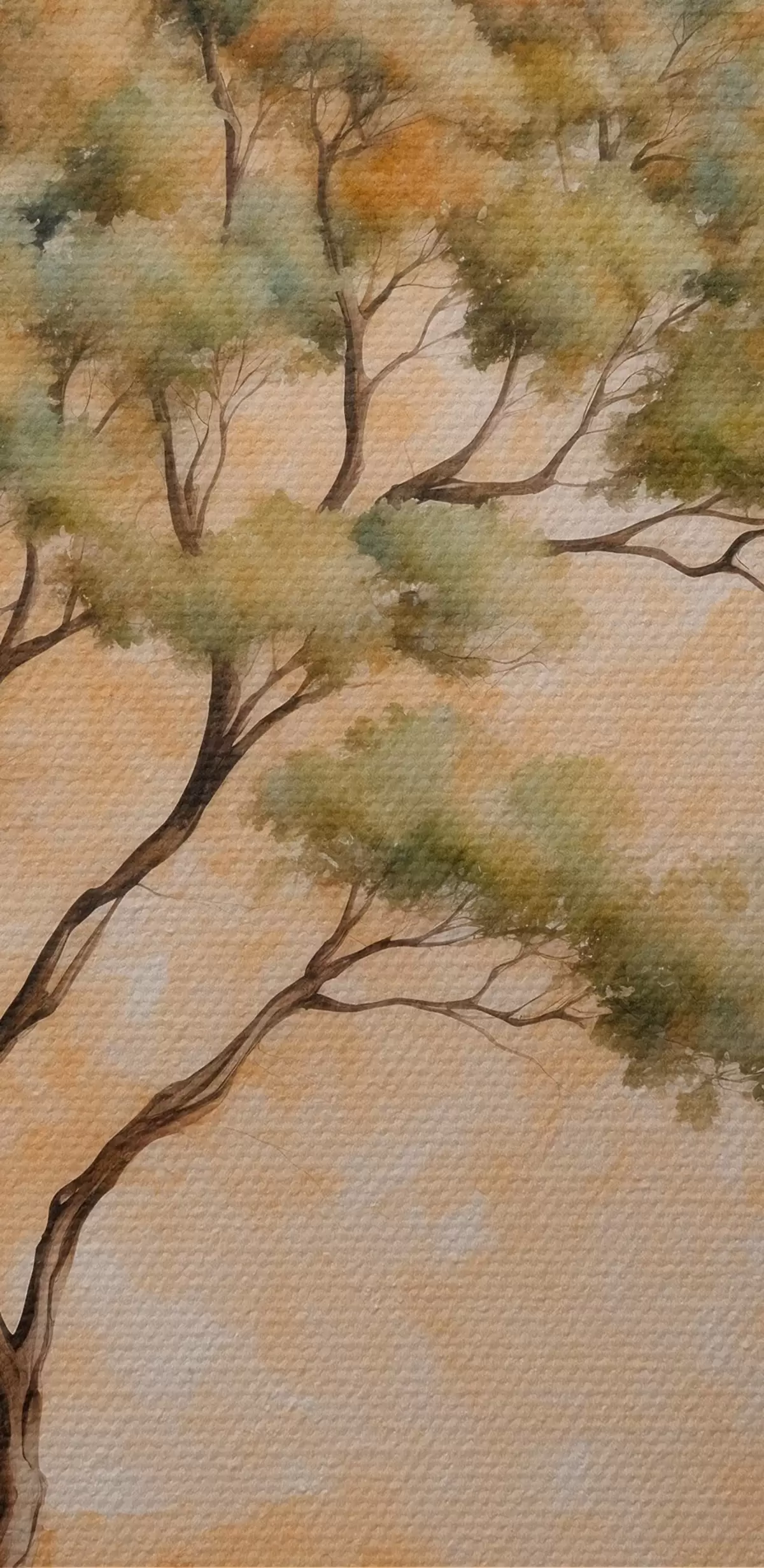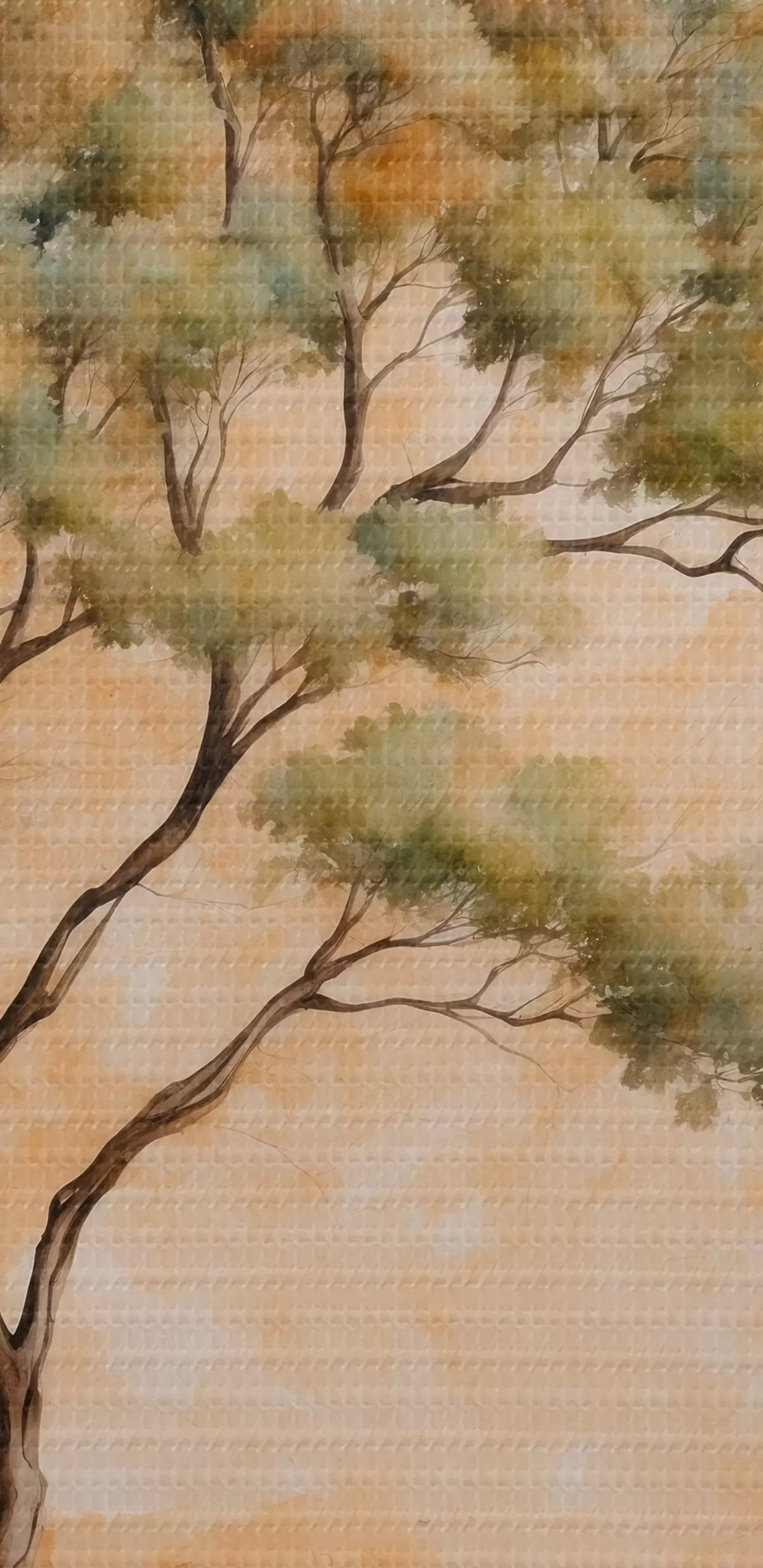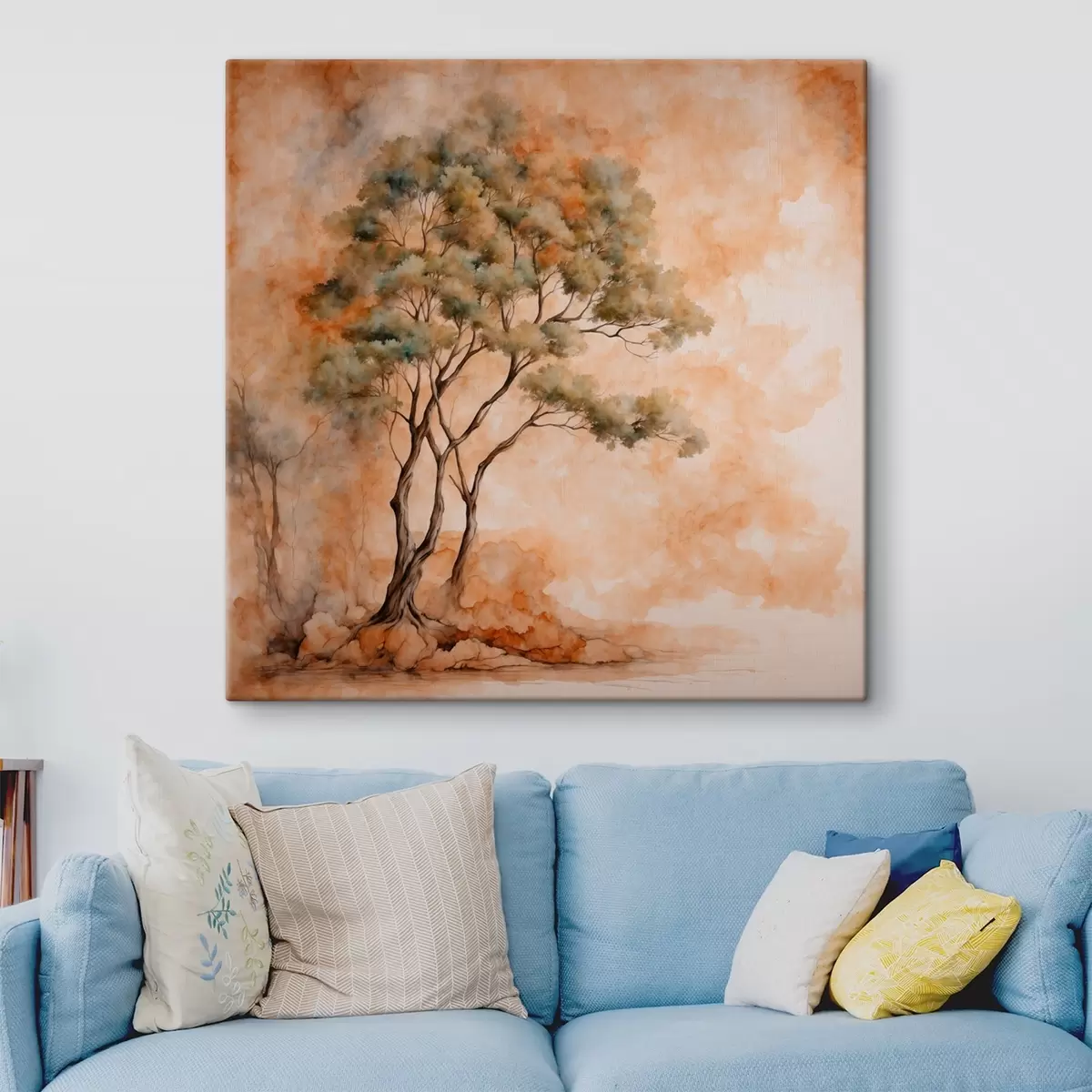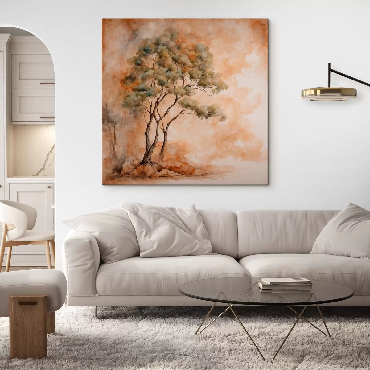 Maalid Puu oranžil ja valgel taustal akvarellmaalide stiilis Nr s42514