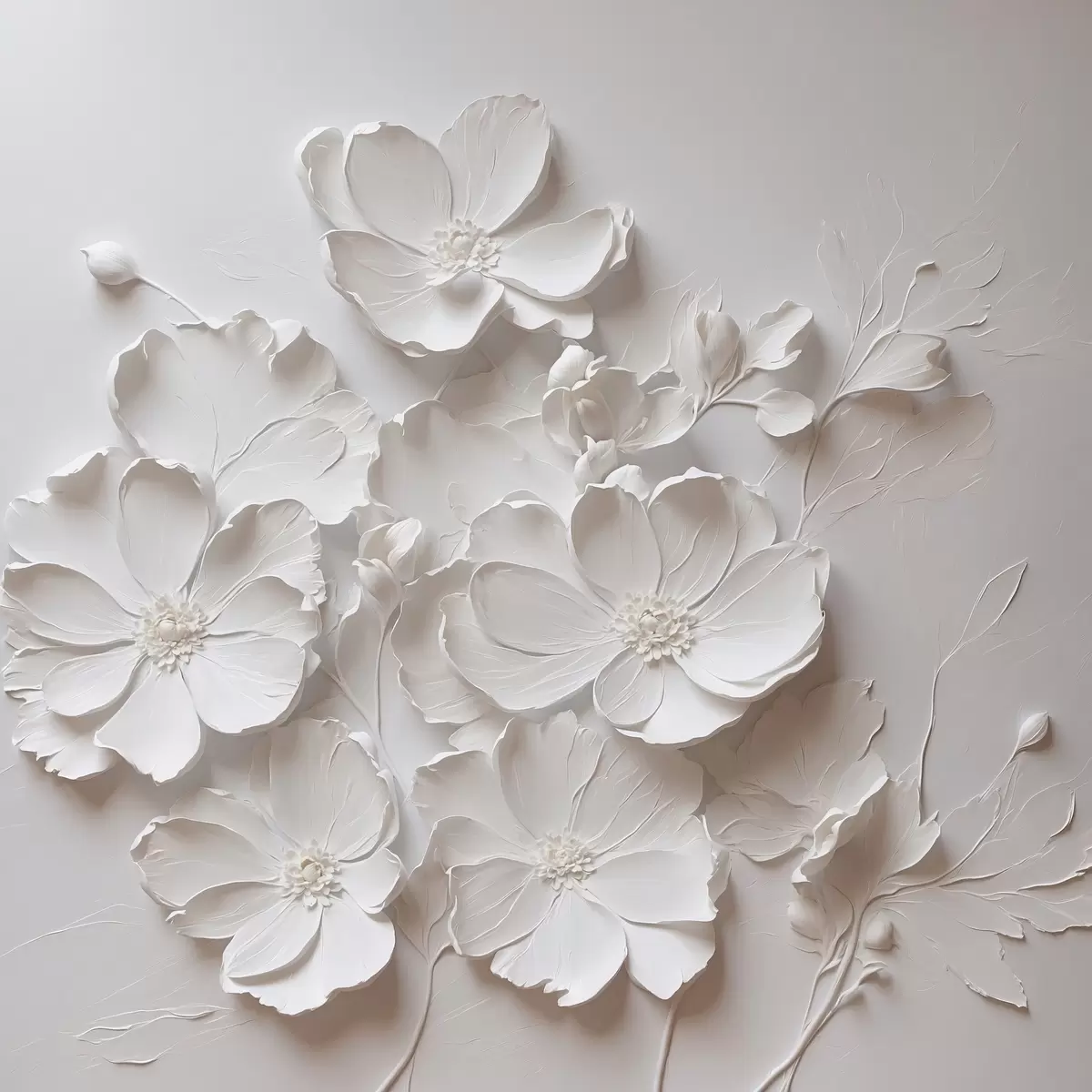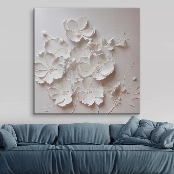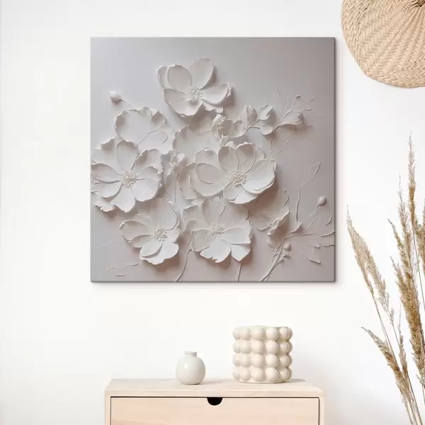 Maalid Valged lilled valgel taustal õlimaali stiilis Nr s42516