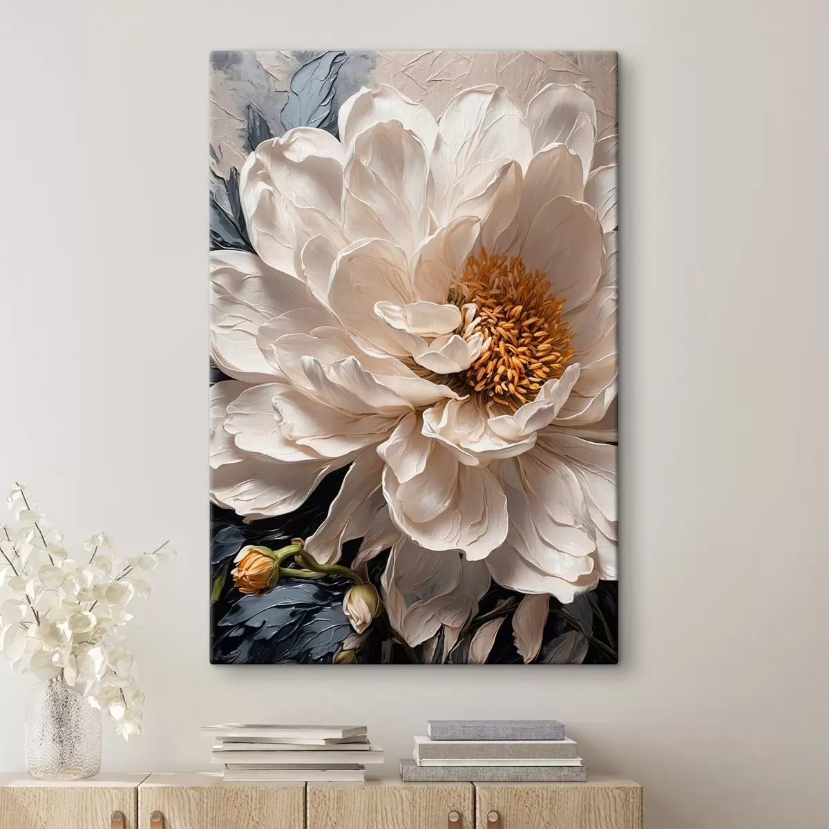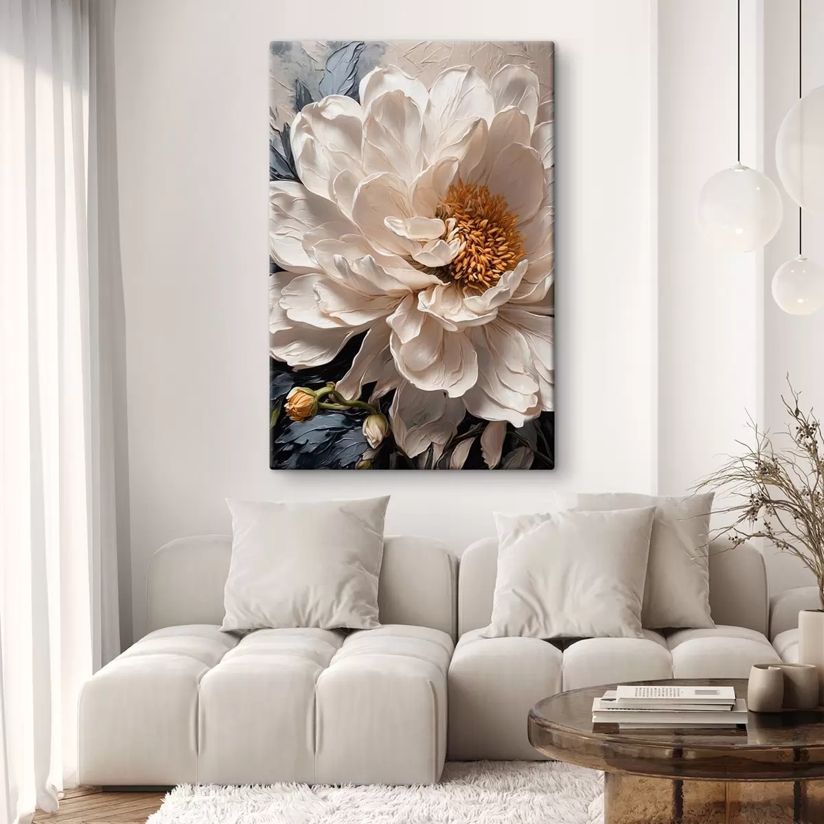 Maalid Valge lill sini-beežil taustal Nr s42523