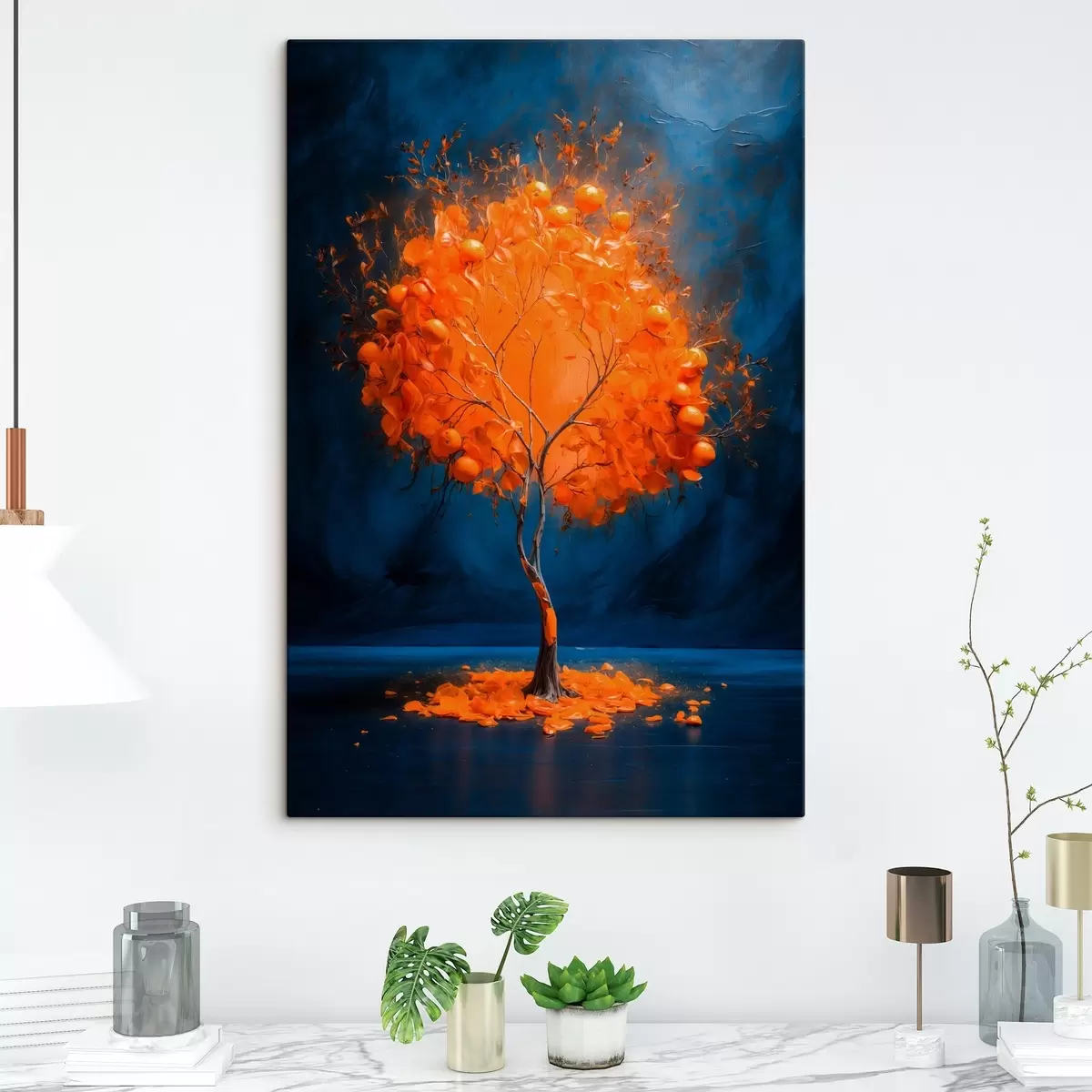 Maalid Oranž puu sinisel taustal akrüülmaali stiilis Nr s42525