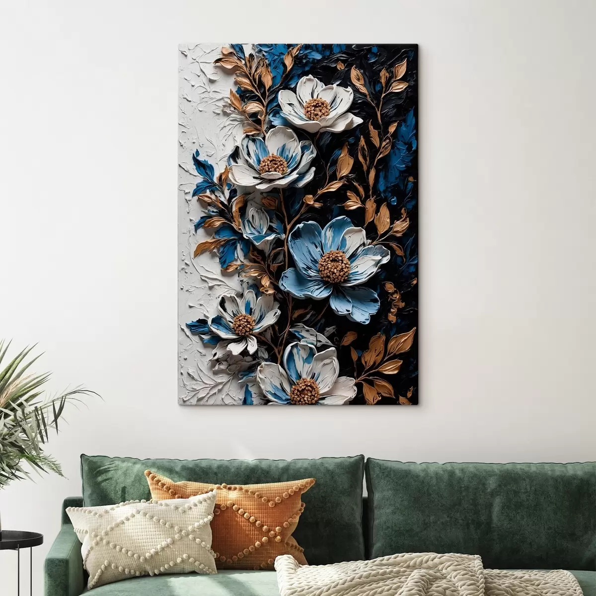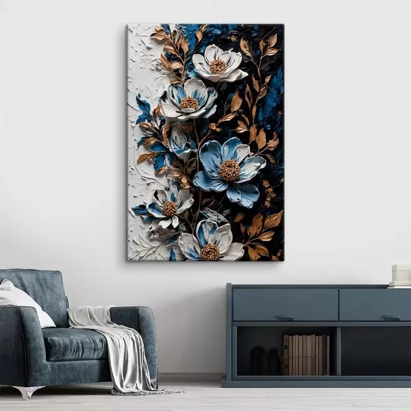 Maalid Lilled ja varred mustal ja valgel taustal õlimaali stiilis Nr s42532