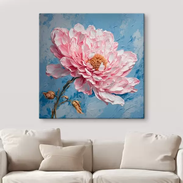 Maalid Roosa lill sinisel taustal õlimaali stiilis Nr s42537