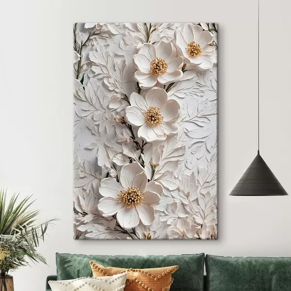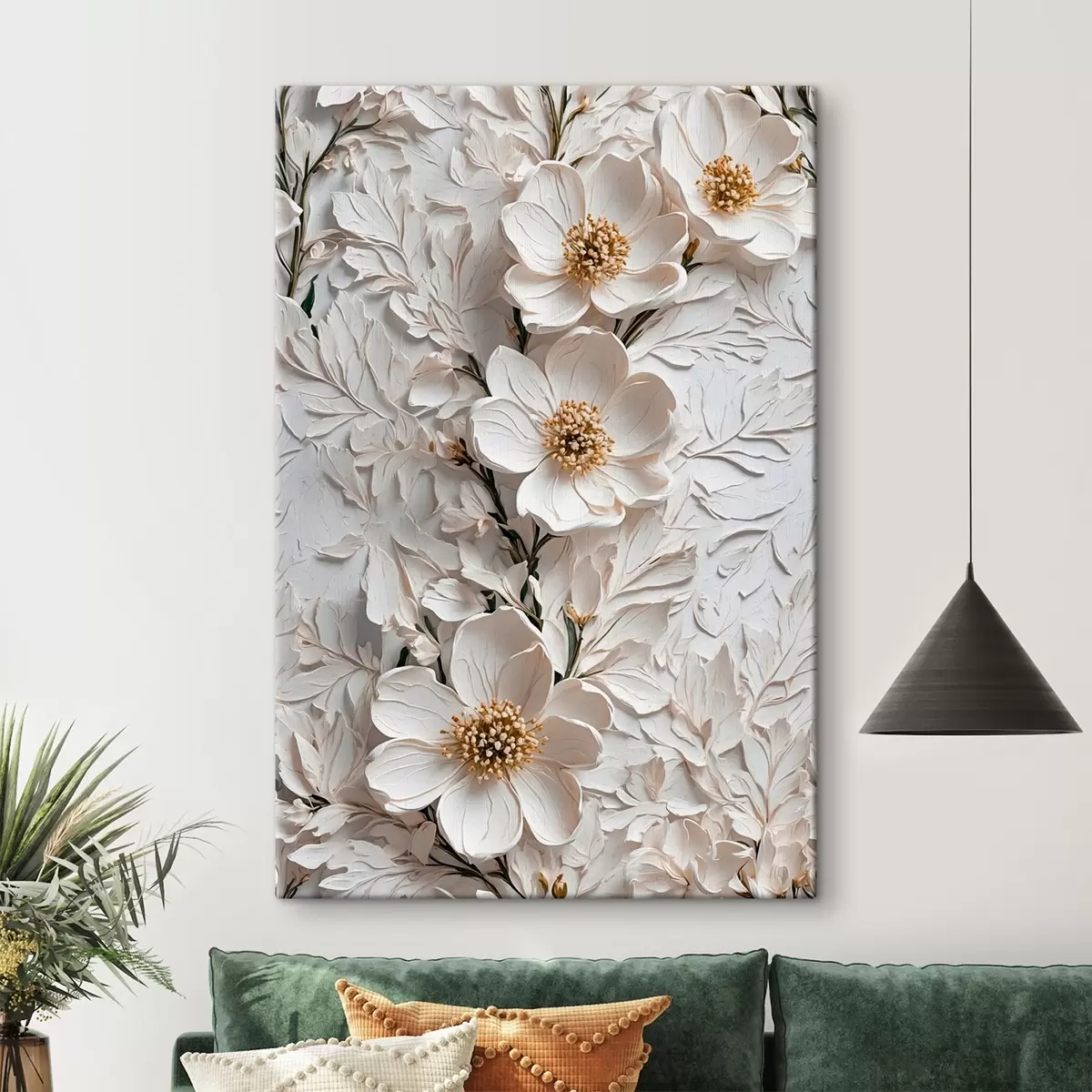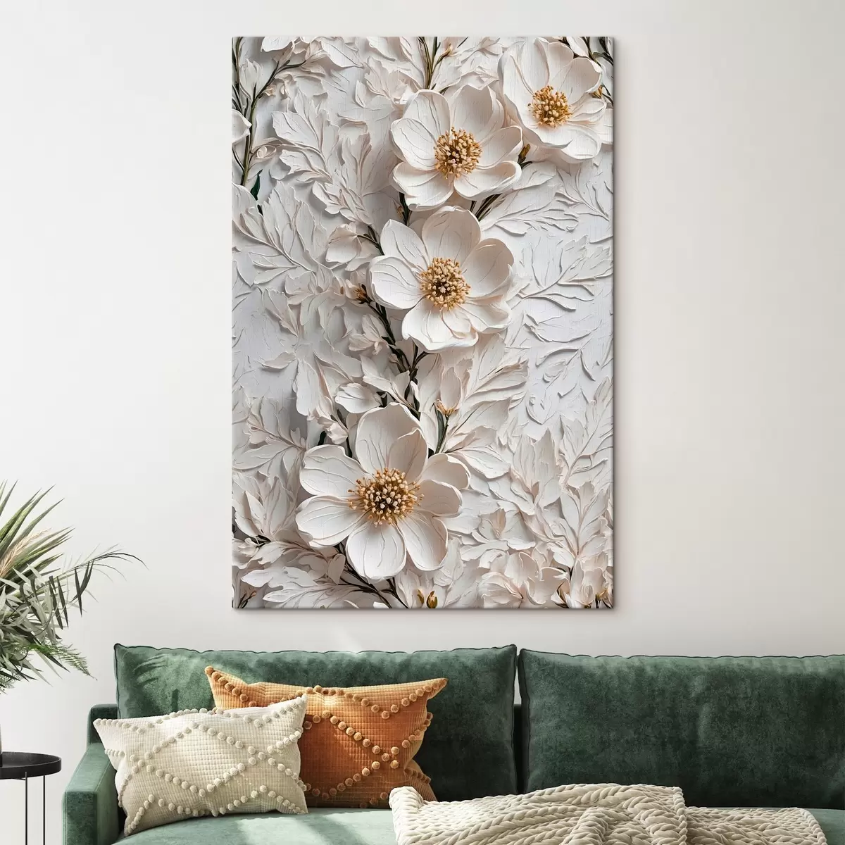 Maalid Valged lilled ja varred õlimaali stiilis Nr s42546