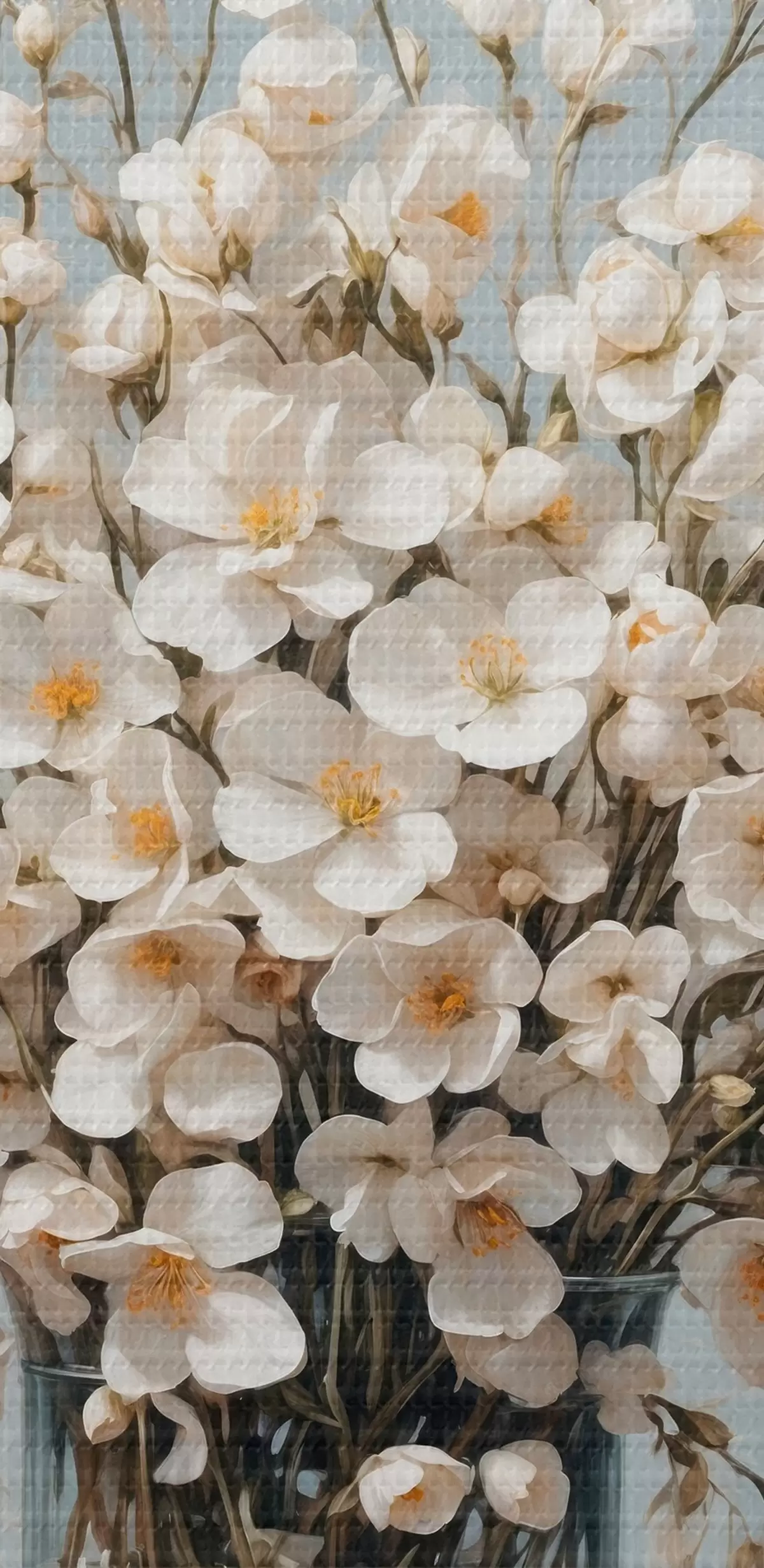 Maalid Valged lilled läbipaistvas vaasis Nr s42547