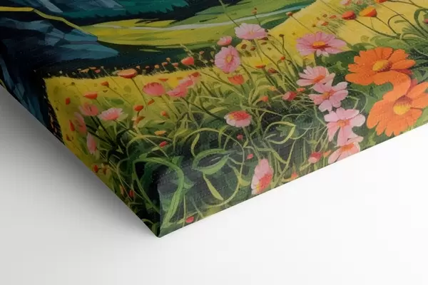 Maalid Elavat mägimaastikku, kus õitsevad niidud, rohelised künkad ja majesteetlikud tipud selge sinise taeva all. Nr s42565