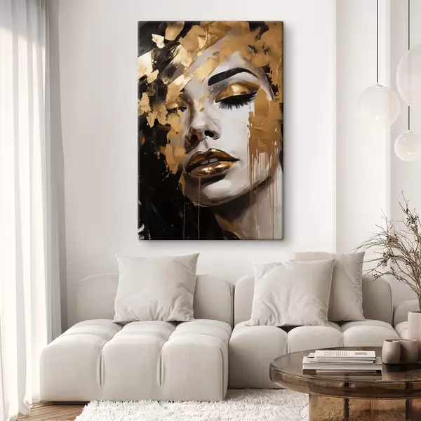 Maalid Abstraktne portree naisest, millel on rikkalikud pintslitõmbed soojades toonides, luues elava ja dramaatilise pildi Nr s42619